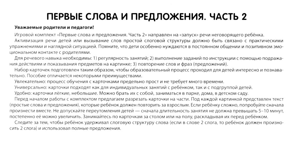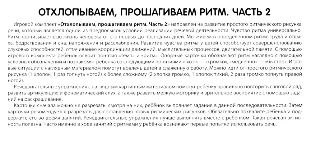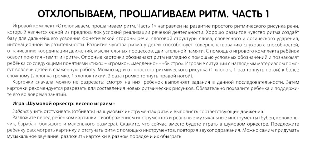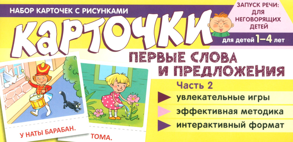 Комплект состоит из: • Набор карточек с рисунками. Карточки на звукоподражание. Гласные звуки • Набор карточек с рисунками. Карточки на звукоподражание. Согласные звуки • Набор карточек с рисунками. Отхлопываем, прошагиваем ритм. Часть 1 • Набор карточек с рисунками. Отхлопываем, прошагиваем ритм. Часть 2 • Набор карточек с рисунками. Первые слова и предложения. Часть 1 • Набор карточек с рисунками. Первые слова и предложения. Часть 2| Издательство | Творческий центр Сфера |