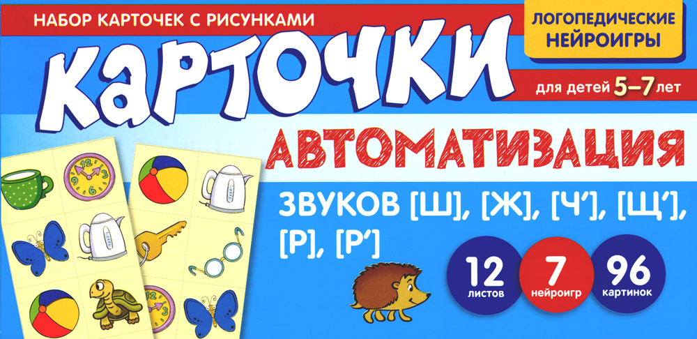 Комплект состоит из: - Набор карточек с рисунками. Автоматизация звуков [Щ], [Ж], [Ч'], [Щ'], [Р], [Р']; - Набор карточек с рисунками. Домино логопедическое. Звук [Ж]. Для детей 4-7 лет; - Набор карточек с рисунками. Играем со звуками. Звуки [Ш], [Ж]; - Набор карточек с рисунками. Логопедическое лото. Учим звуки [Ж], [Ш], [Ц], [Т'].| Издательство | Творческий центр Сфера |