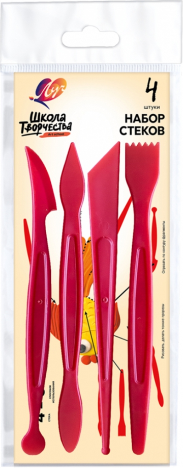 Набор стеков состоит из 4 предметов. Каждый стек имеет два рабочих конца различной конфигурации.