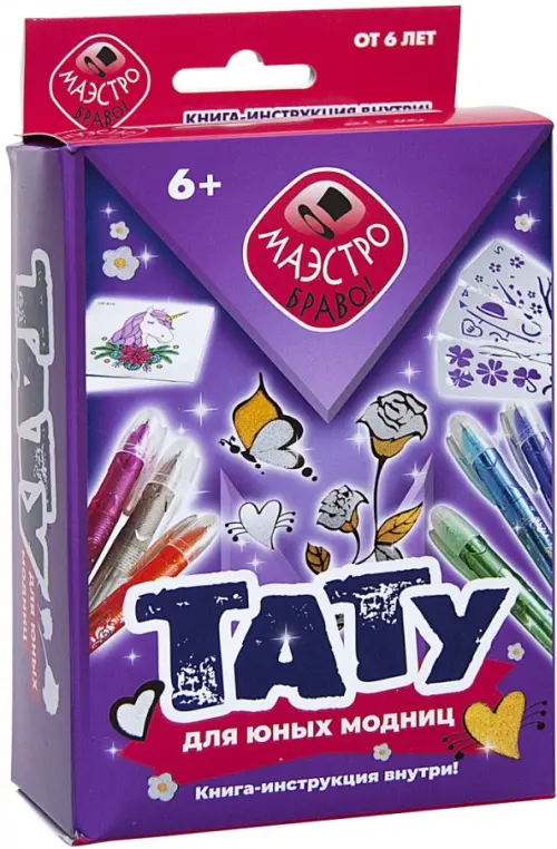 Великолепный набор для юных модниц, в котором много-много аксессуаров, чтобы сделать временные тату, и вдохновляющая книга-инструкция!