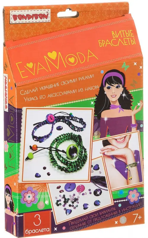 Комплектность: пластиковые бусы, деревянные бусы, пуговицы, стразы, хлопковая нить, вощеный шнур, 2 иглы, нитевдеватель, инструкция.