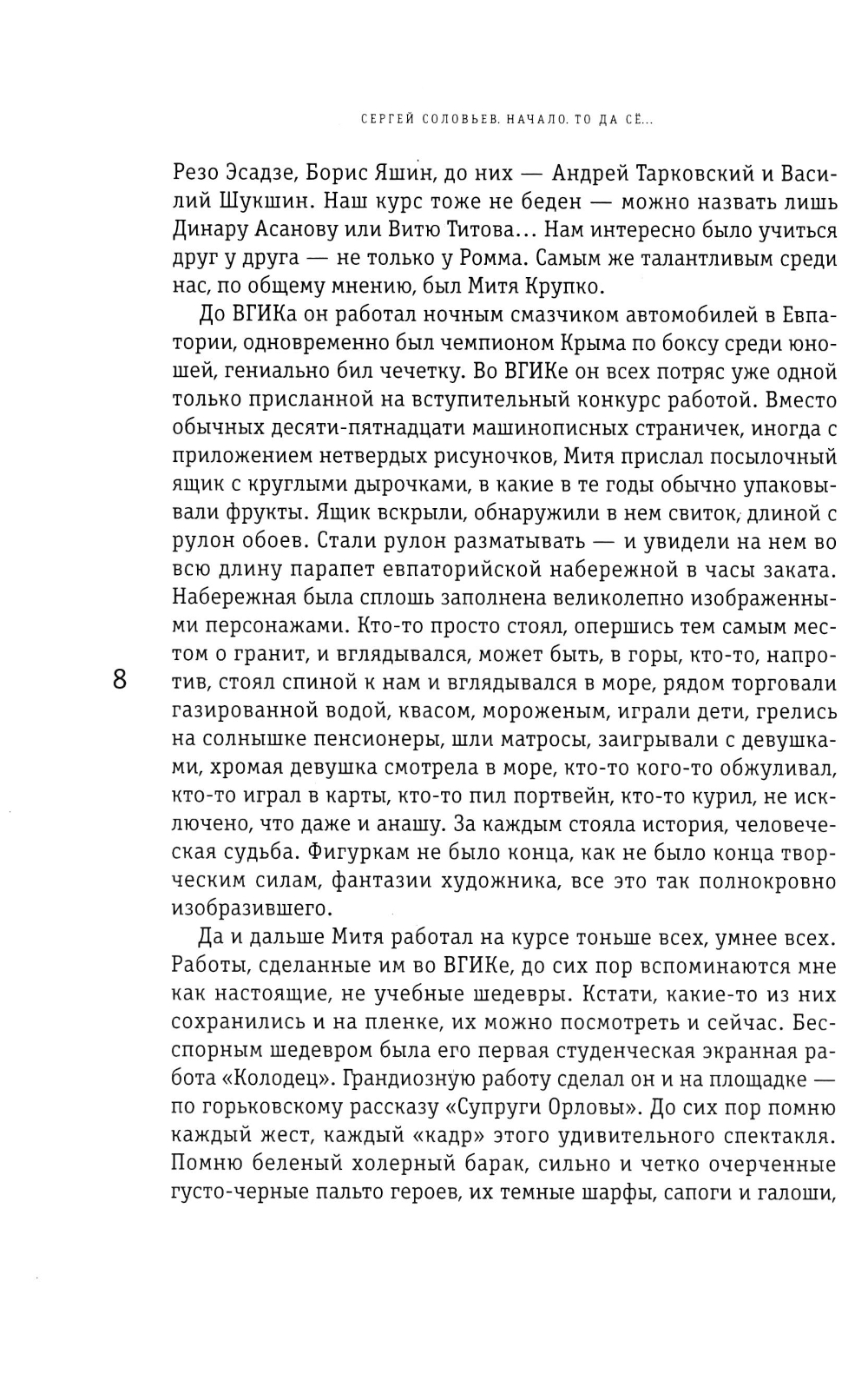 Первая книга из мемуарной трилогии советского и российского кинорежиссера и сценариста Сергея Соловьева (1944-2021) посвящена началу его большого пути - человеческого и профессионального. Он вспоминает детство и юность, первые пробы пера и кинокамеры. Без пафоса и подобострастия Соловьев говорит о друзьях, учителях и коллегах, ныне здравствующих и уже ушедших, честно - о победах и поражениях в битвах с самим собой и с другими. М. И. Ромм назвал кинорежиссуру «способом жизни» - о горестях и радостях этой жизни читатель узнает из первых уст.