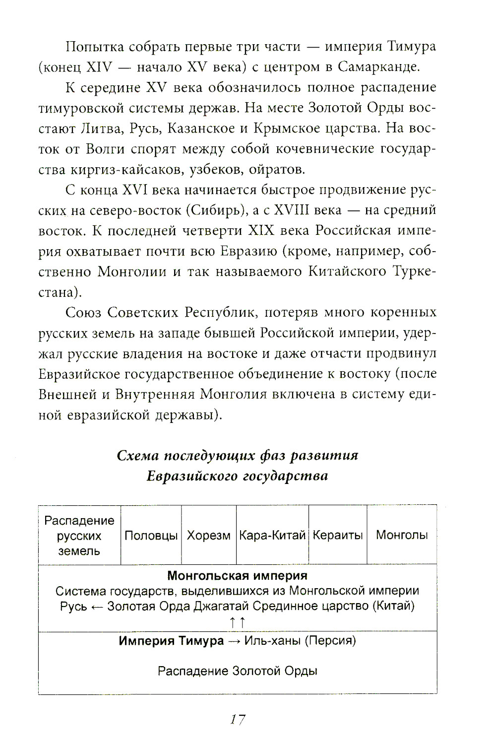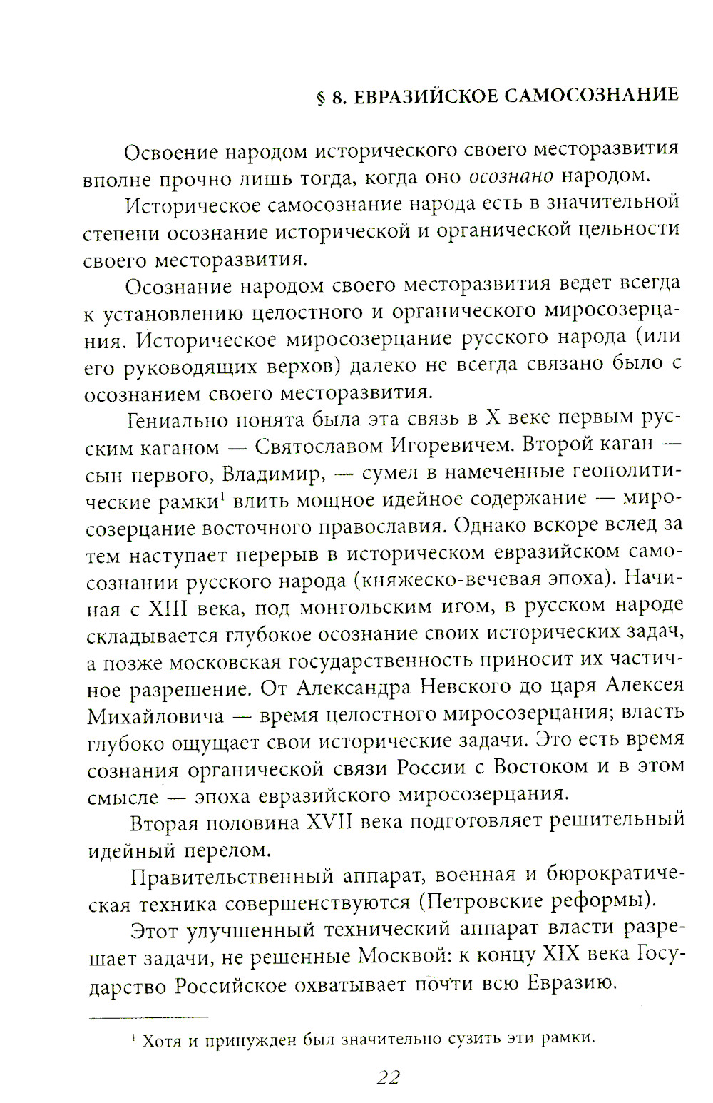 Георгий Вернадский (1887-1973) - профессор, один из создателей учения евразийства, русский историк, который большую часть жизни провел в эмиграции. Его книга «Начертание русской истории» стала, по существу, тем фундаментом, на котором строили свои теории все последующие евразийцы, от Льва Гумилева до нынешних представителей этого движения. Книга охватывает огромный период истории Евразии от гуннов до большевиков, но посвящена, большей частью, истории русского народа, которая, по мнению автора, «есть постепенное освоение русскими своего месторазвития - Евразии».| Издательство | Родина |