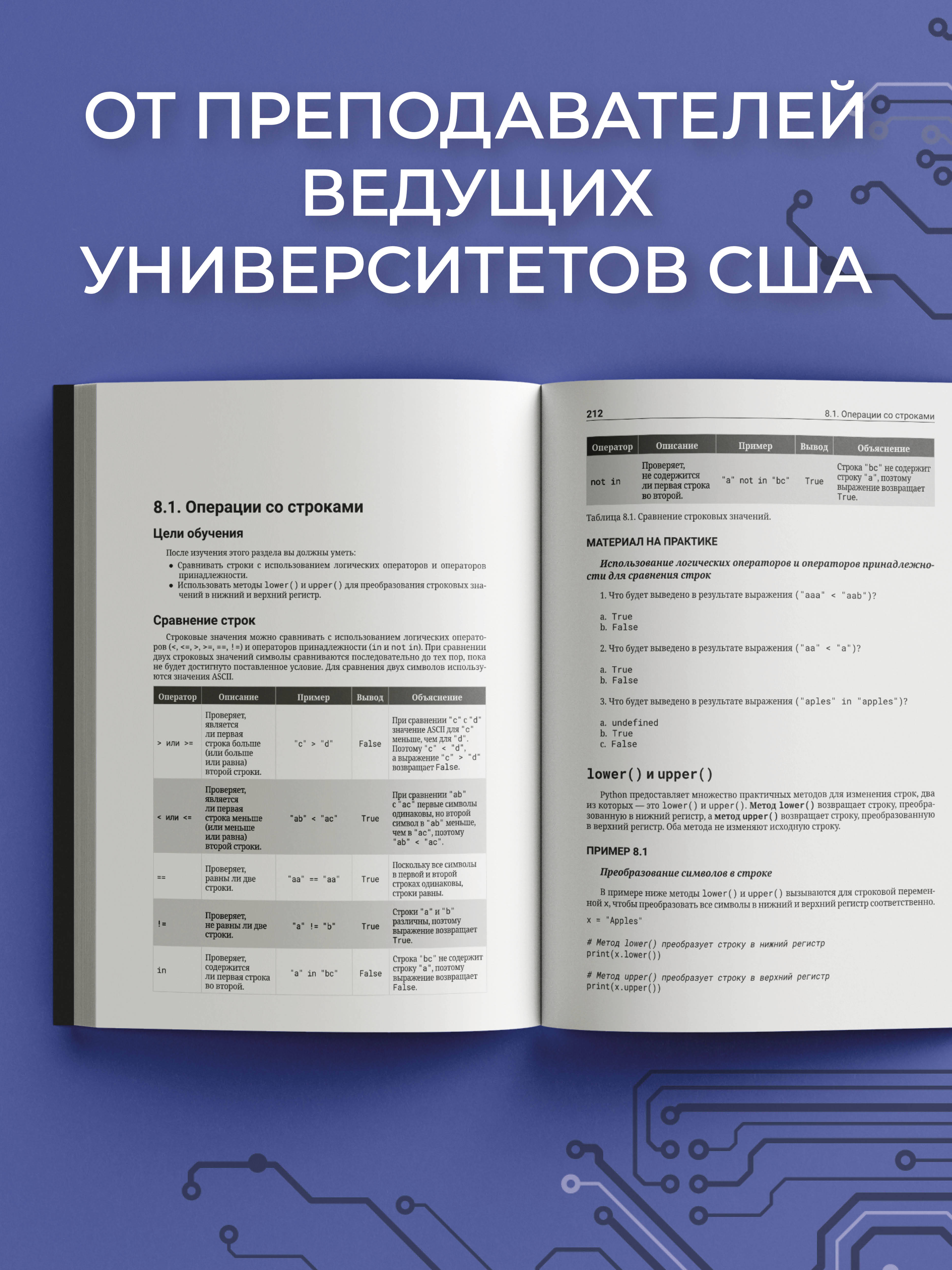 Освоить Python с нуля быстро, интерактивно и результативно - вполне реально! Перед вами не просто учебник, а полноценный курс по обучению программированию на популярном языке Python, разработанный с упором на немедленное применение полученных знаний на практике. Благодаря доступу к специальному браузерному компилятору, понятным объяснениям и концентрации на практических задачах вы начнете уверенно программировать уже с первых страниц и быстро обретете уверенность в своих действиях. Преимущества книги: 1. Четкая структура и лаконичные объяснения без избыточной теории. 2. Ссылки на интерактивный браузерный компилятор. 3. Пошаговые видеоанимации и контрольные вопросы с подсказками. 4. Упор на практику: каждое понятие закрепляется заданием. 5. Современные темы - от классов и модулей до анализа данных с NumPy и Pandas. Книга предназначена для: - новичков, которые только начинают свой путь в программировании; - школьников и студентов, осваивающих Python на курсах и в учебных заведениях; - представителей разных профессий - аналитиков, экономистов, биологов, - желающих автоматизировать свои рабочие задачи. - всех, кто хочет изучить востребованный язык программирования Python без лишней теории.| Издательство | Издательство "АСТ" |