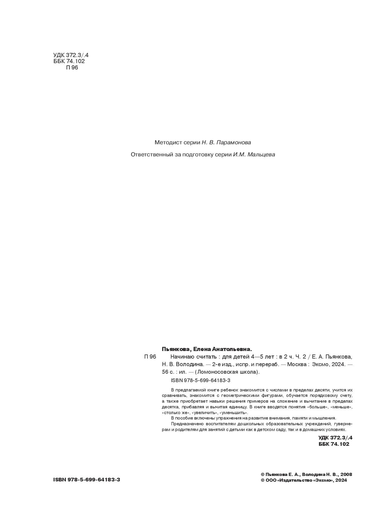 Аннотация: Начинаю считать. Для детей 4-5 лет. Часть 2