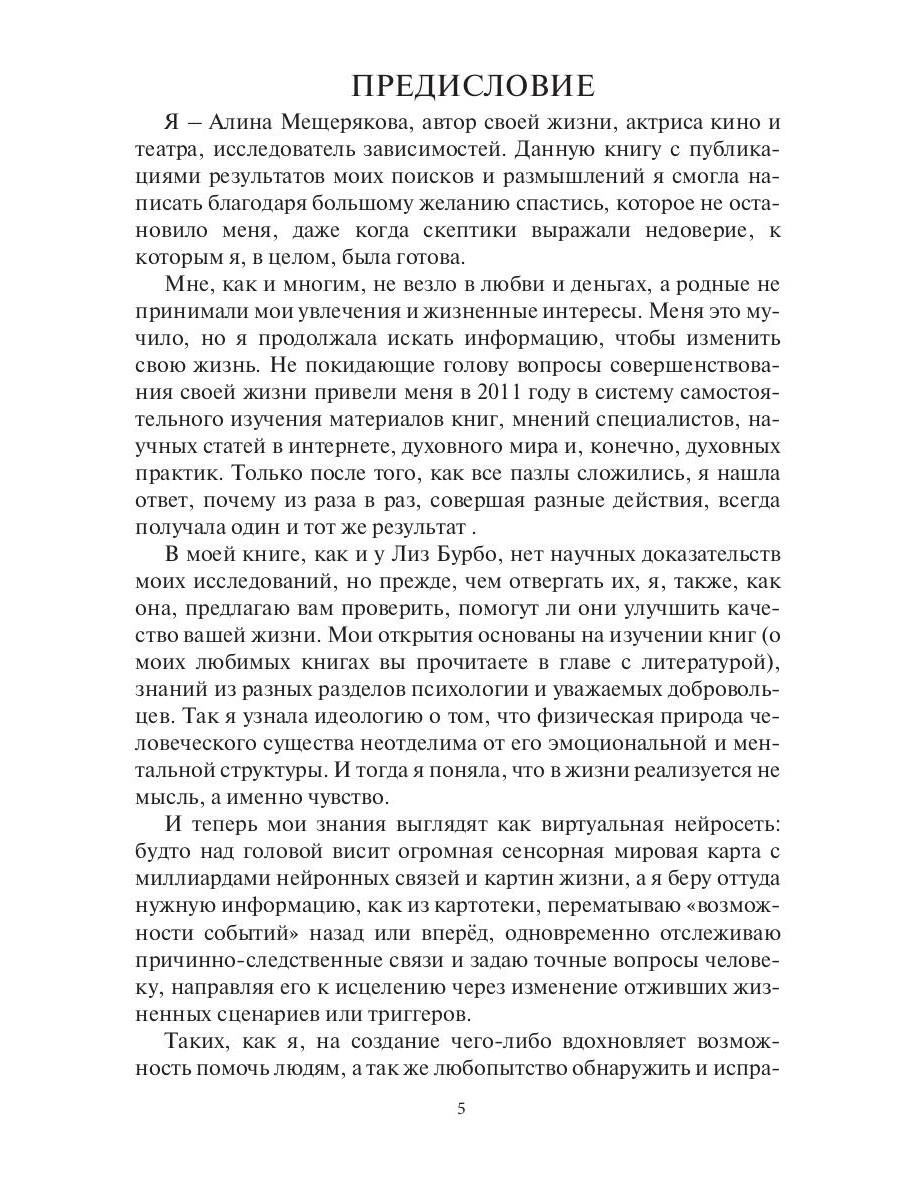 Книга о зависимостях и зависимом поведении человека, написанная авторским взглядом. Это простое объяснение жизни лёгким, местами дерзким языком. В книге изложены собственные исследования, опыт, теории и первая помощь в осознании себя. Алина Мещерякова, актриса и автор своей жизни, исследовала природу зависимостей с помощью холистической психологии. Благодаря своим взглядам и собственным исследованиям Алина вывела метод для помощи людям в таких сферах жизни, как любовь, деньги, измены, депрессии и, конечно, зависимость. Ей всегда хотелось всё упростить, отследить и понять почему что-то происходит и как это наладить или предотвратить причинно-следственные связи. Так создалась эта книга, чтобы люди могли начать жить легче и комфортнее. Алина говорит: «Никому не хочется страдать. У меня было хорошее детство, но были моменты и серьёзные, из-за которых я решила создать палочку-выручалочку, то есть «Волшебную таблетку». 2023-2025| Издательство | Рипол Классик |