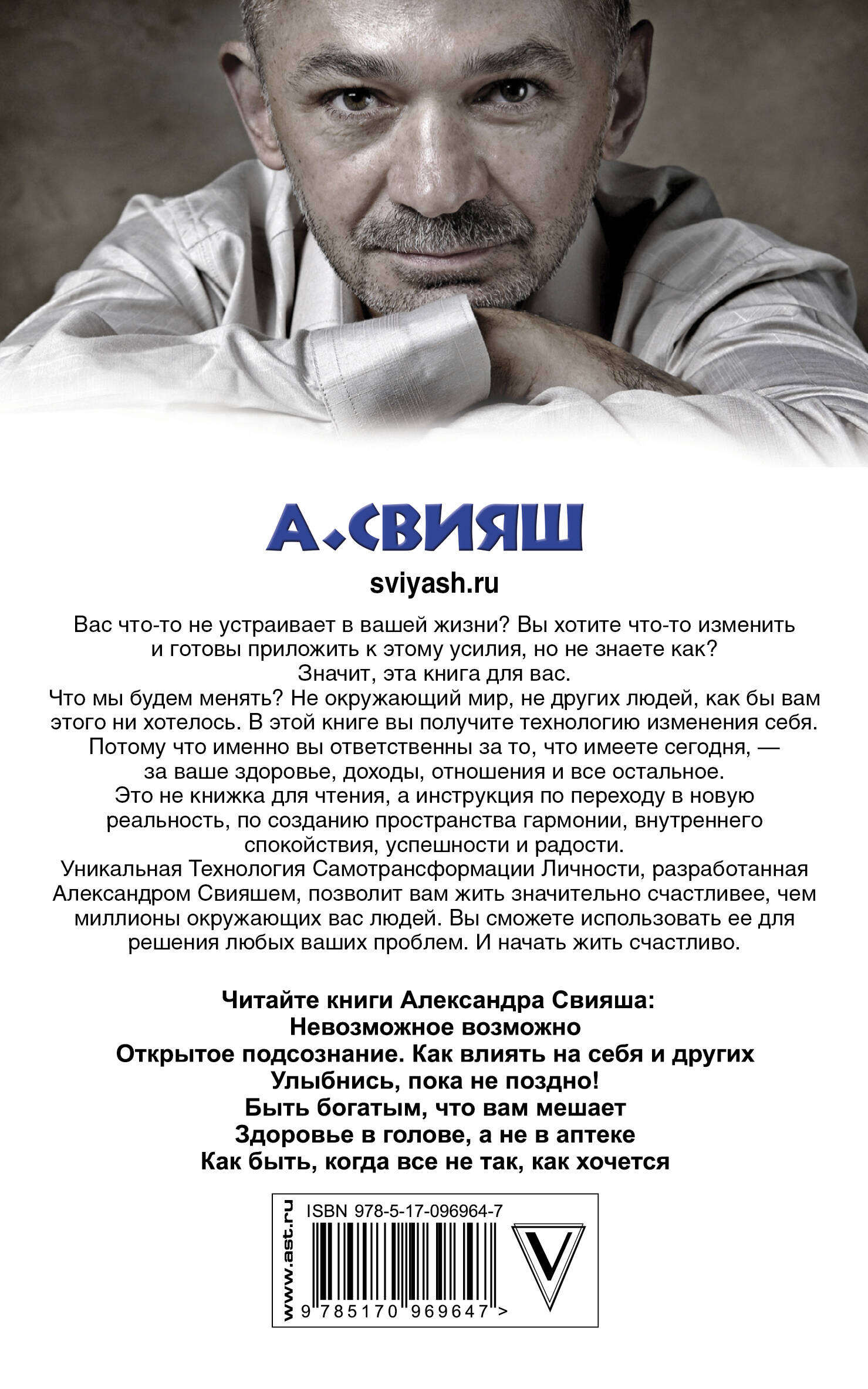 Александр Свияш - мастер позитивного мышления, кандидат наук, сопредседатель Ассоциации профессионалов развития личности, автор книг-бестселлеров, научный руководитель Центра позитивной психологии "Разумный путь". Вас что-то не устраивает в вашей жизни? Вы хотите что-то изменить и готовы приложить к этому усилия, но не знаете как? Значит, эта книга для вас. Что мы будем менять? Не окружающий мир, не других людей, как бы вам этого ни хотелось. В книге "Начни жизнь заново! 4 шага к новой реальности" вы получите технологию изменения себя. Потому что именно вы ответственны за то, что имеете сегодня, - за ваше здоровье, доходы, отношения и все остальное. Это не книжка для чтения, а инструкция по переходу в новую реальность, по созданию пространства гармонии, внутреннего спокойствия, успешности и радости. Уникальная Технология Самотрансформации Личности, разработанная Александром Свияшем, позволит вам жить значительно счастливее, чем миллионы окружающих вас людей. Вы сможете использовать ее для решения любых ваших проблем. И начать жить счастливо.