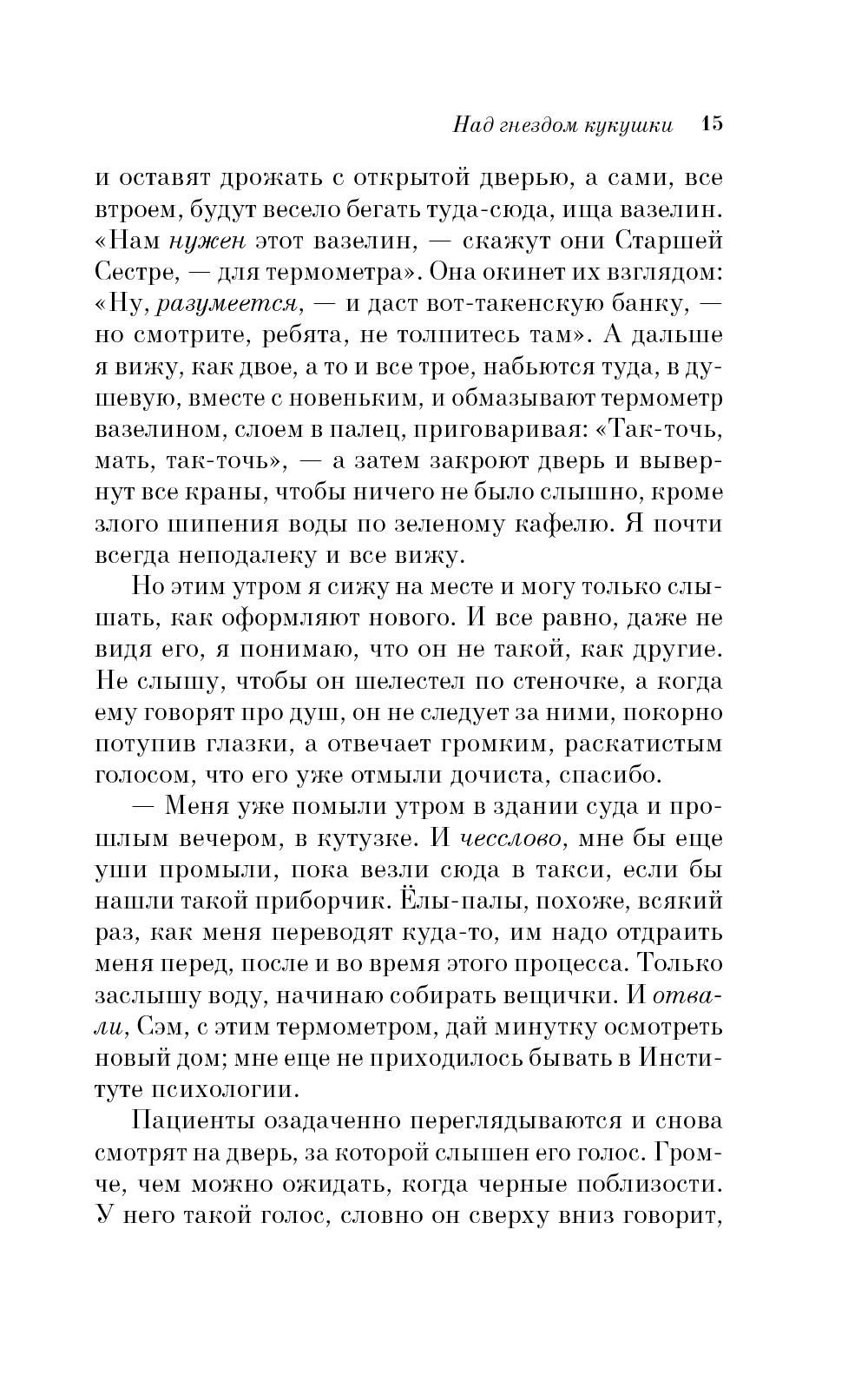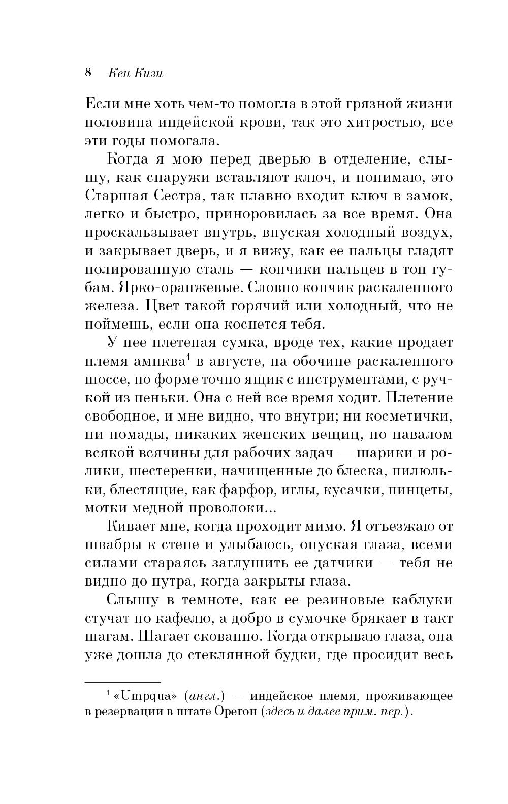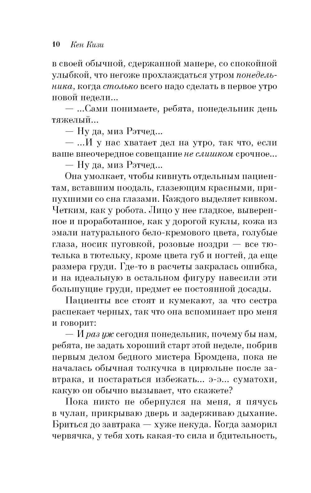 Культовый роман, который входит в сотню самых читаемых по версии «Таймс». Вышел в шестидесятых, в яркое время протеста нового поколения против алчности, обезличивания, войн и насилия. Либерализм против традиционализма, личность против устоев. Роман потрясает глубиной, волнует, заставляет задуматься о жизни, о справедливости, о системе и ее непогрешимости, о границах безумия и нормальности, о свободе, о воле, о выборе. «Над гнездом кукушки» - это грубое и опустошающе честное изображение границ между здравомыслием и безумием. «Если кто-нибудь захочет ощутить пульс нашего времени, пусть читает Кизи. И если все будет хорошо и не изменится порядок вещей, его будут читать и в следующем веке», - писали в газете «Лос-Анджелес Таймс». Действительно, и в наши дни книга продолжает жить и не теряет своей сумасшедшей популярности. Новый перевод сделал молодой талантливый переводчик Дмитрий Шепелев.| Издательство | Эксмо |