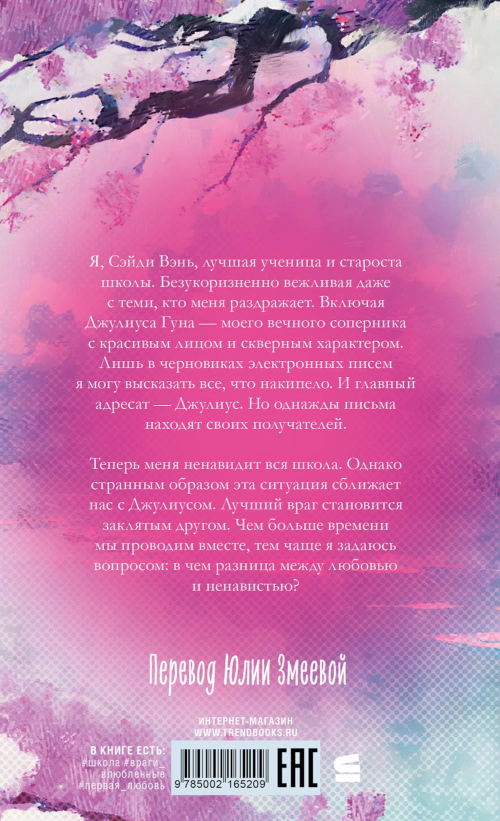 «Надеюсь, ты это не прочтешь» Энн Лян - яркая, легкая и невероятно увлекательная история, в которой есть школа, друзья детства и первая любовь, родившаяся из жаркой вражды. Книга для всех, кто обожает дорамы! «Я, Сэйди Вэнь, - лучшая ученица и староста школы. Безукоризненно вежливая даже с теми, кто меня раздражает. Включая Джулиуса Гуна, моего вечного соперника с красивым лицом и скверным характером. Лишь в черновиках электронных писем я могу высказать все, что накипело. И главный адресат - Джулиус. Но однажды письма находят своих получателей. Теперь меня ненавидит вся школа. Однако странным образом эта ситуация сближает нас с Джулиусом. Лучший враг становится заклятым другом. Чем больше времени мы проводим вместе, тем чаще я задаюсь вопросом: «В чем разница между любовью и ненавистью?»| Издательство | Клевер-Медиа-Групп |