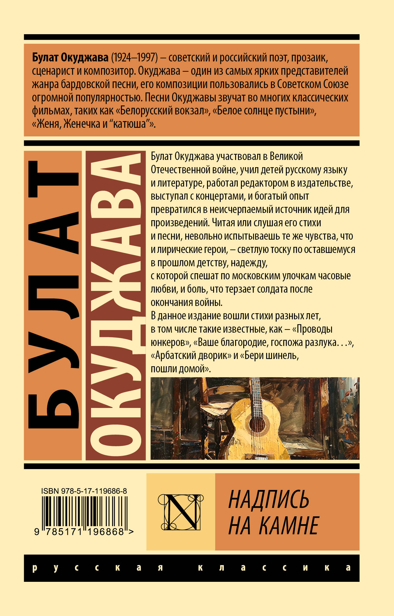 Лучшие стихи Булата Окуджавы под одной обложкой. В данное издание вошли стихи разных лет, в том числе такие известные, как «Песенка о юнкерах», «Ваше благородие, госпожа разлука…», «Арбатский дворик» и «Бери шинель, пошли домой».| Издательство | Издательство "АСТ" |