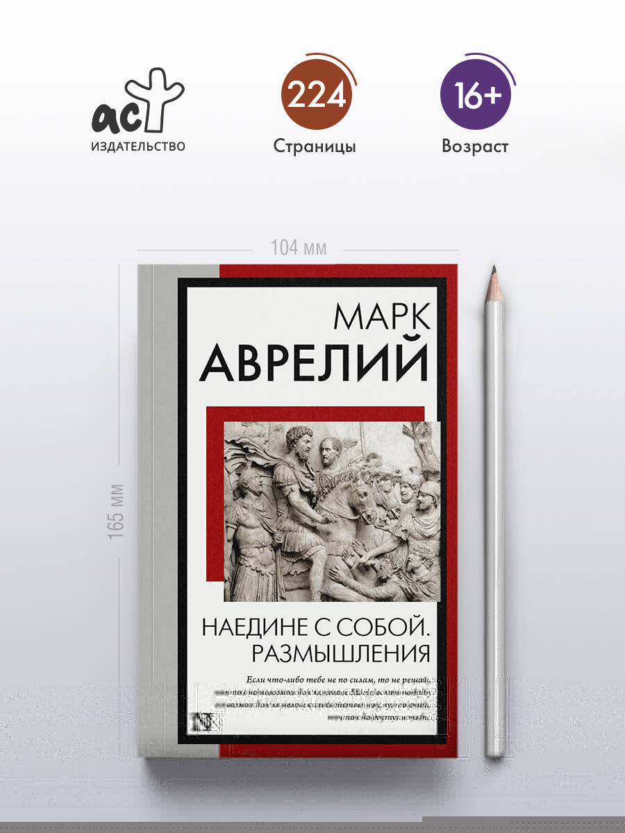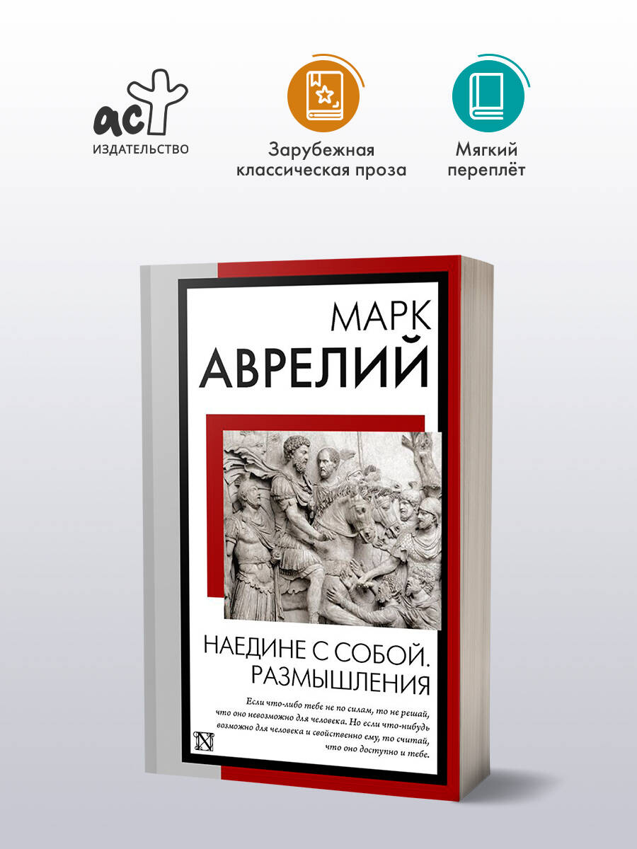 "Наедине с собой. Размышления" - сборник афористических мыслей Марка Аврелия, написанный им на греческом языке (койне) в 70-е годы II века во время войны на дунайской границе. Он пользовался несомненным успехом в позднеантичное время, а в XVI веке возродился в европейских философских кругах. Эти личные записи отражают упорное стремление императора не только руководствоваться в своем мироощущении учением стоиков, но и развивать его дальше, назвав ведущим началом в человеке не душу, но разум, который нужно привести в согласие с природой целого, достигнув таким образом бесстрастия.| Издательство | ИЗДАТЕЛЬСТВО "АСТ" |