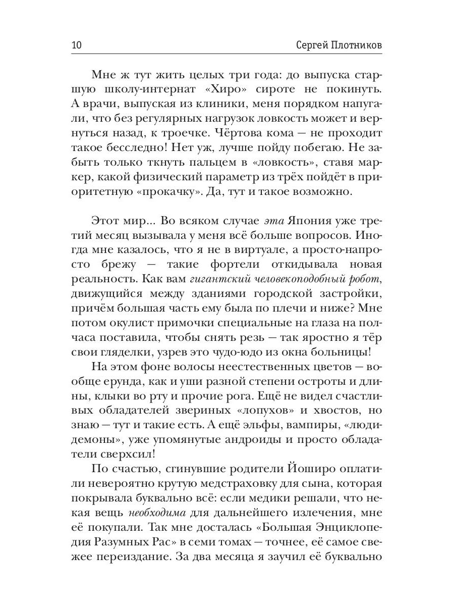 Ярослав приходит в себя в другом мире и другом теле. Врачи говорят, что он по возрасту школьник-старшеклассник, живёт в Японии, очнулся после длительной комы, и зовут теперь его Йоширо. Япония какая-то странная, да и вообще весь мир кажется Ярославу-Йоширо похожим на компьютерную игру, вернее, смесь всех известных ему игр. С помощью наручного компьютера можно измерить свои характеристики в цифрах как в РПГ (и даже выбрать, что "качать"!), по улицам Токийской Агломерации вместе с японцами и иностранцами запросто бродят эльфы, вампиры, разумные человекоподобные роботы и прочие вроде как выдуманные существа. А закон и порядок наряду с полицией защищают... чёрт, старшеклассники-супергерои!? Вот... "повезло". И ведь хочешь-не хочешь, придётся как-то выкручиваться.| Издательство | Т8 RUGRAM |