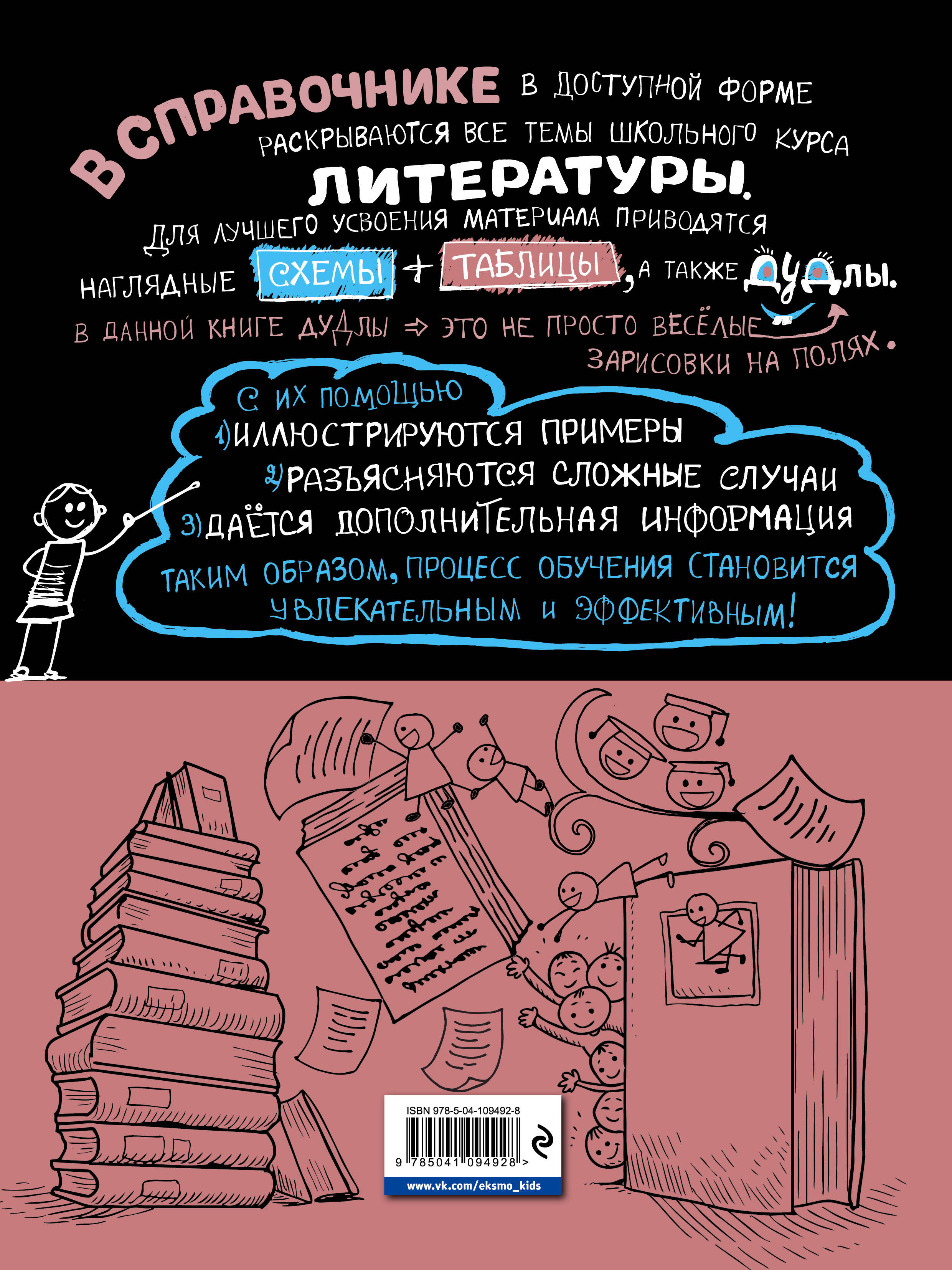 Справочник содержит сведения по всем темам школьного курса литературы. Весь теоретический материал систематизирован, сопровождается примерами, наглядными схемами и таблицами, а также рисунками на полях (дудлами), которые помогают лучше запомнить полученную информацию. Пособие предназначено для школьников и учителей, а также для всех, кто интересуется вопросами литературы. Справочник станет незаменимым помощником на протяжении всего школьного курса литературы. Написанная доступным языком теория, наглядные примеры, схемы и таблицы помогут систематизировать и закрепить знания, а дудлы - забавные каракули - сделают даже самый сложный материал простым и понятным, превратив учёбу в увлекательный процесс. В книге также предусмотрено место для собственных примеров, примечаний и, конечно же, дудлов! Никогда ещё литература не была такой наглядной! • Все темы школьного курса. • Доступная подача материала. • Практические примеры. • Наглядные схемы и таблицы. • Забавные дудлы.| Издательство | ООО "Издательство "Эксмо" |