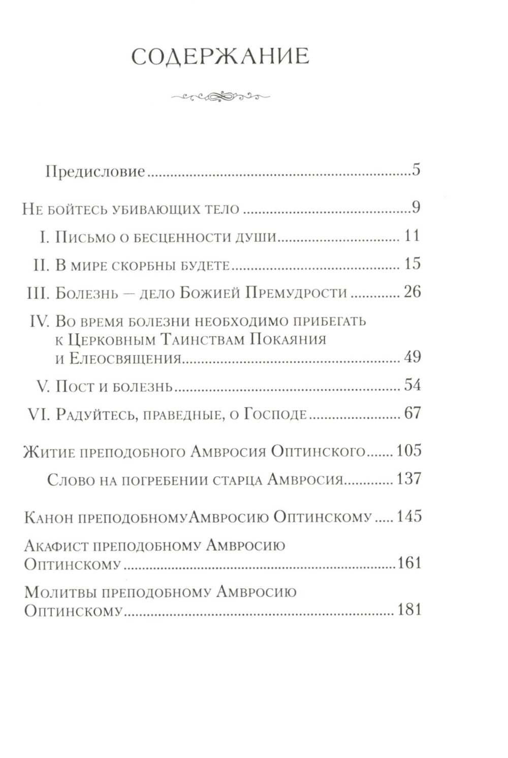 Став в 36 лет инвалидом по состоянию здоровья, преподобный Амвросий не впал в уныние. И чем тяжелее были приступы болезни у преподобного, тем более возрастал он духовно. Не понаслышке зная, что такое физические страдания, преподобный Амвросий всегда находил в себе силы помогать другим. Его неподдельная любовь к ближним, доброта, простота в общении, житейский юмор, духовные советы, пропущенные через сердце, оказывали на страждущих живительное воздействие. После общения с ним люди духовно преображались, становились другими. Советы и наставления преподобного Амвросия дошли до нас в его письмах к многочисленным духовным чадам - мирянам и монашествующим. Допущено к распространению Издательским Советом Русской Православной Церкви.| Издательство | Сибирская благозвонница** |