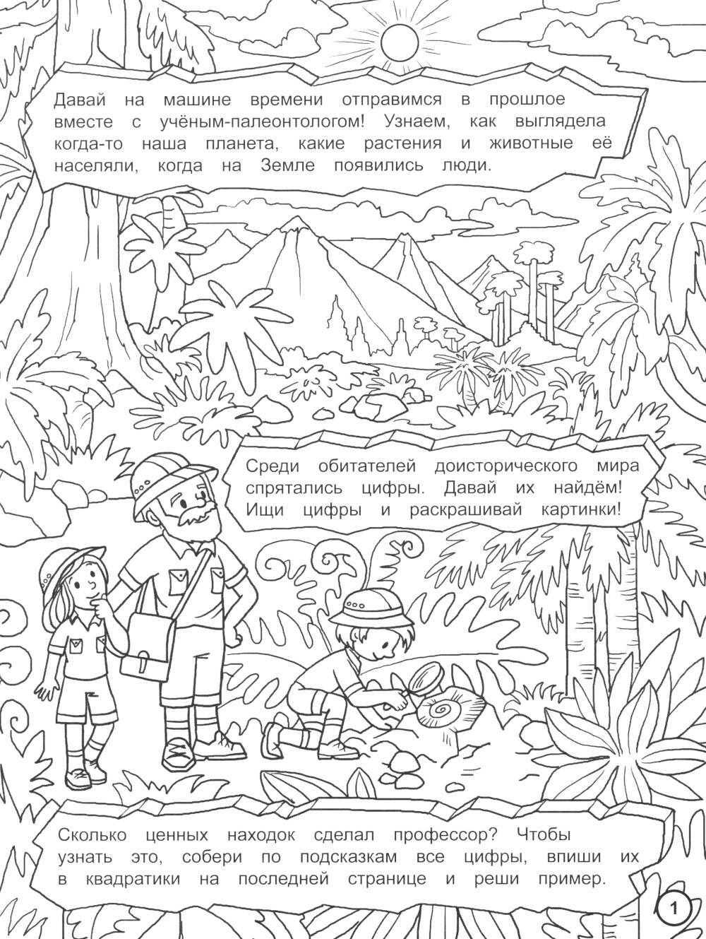 Познакомься с динозаврами и другими доисторическими животными, побывай в гостях у первобытных людей! Ищи цифры и раскрашивай картинки Развиваем внимание! Складываем, вычитаем, решаем! Играем и раскрашиваем!| Издательство | Проспект |