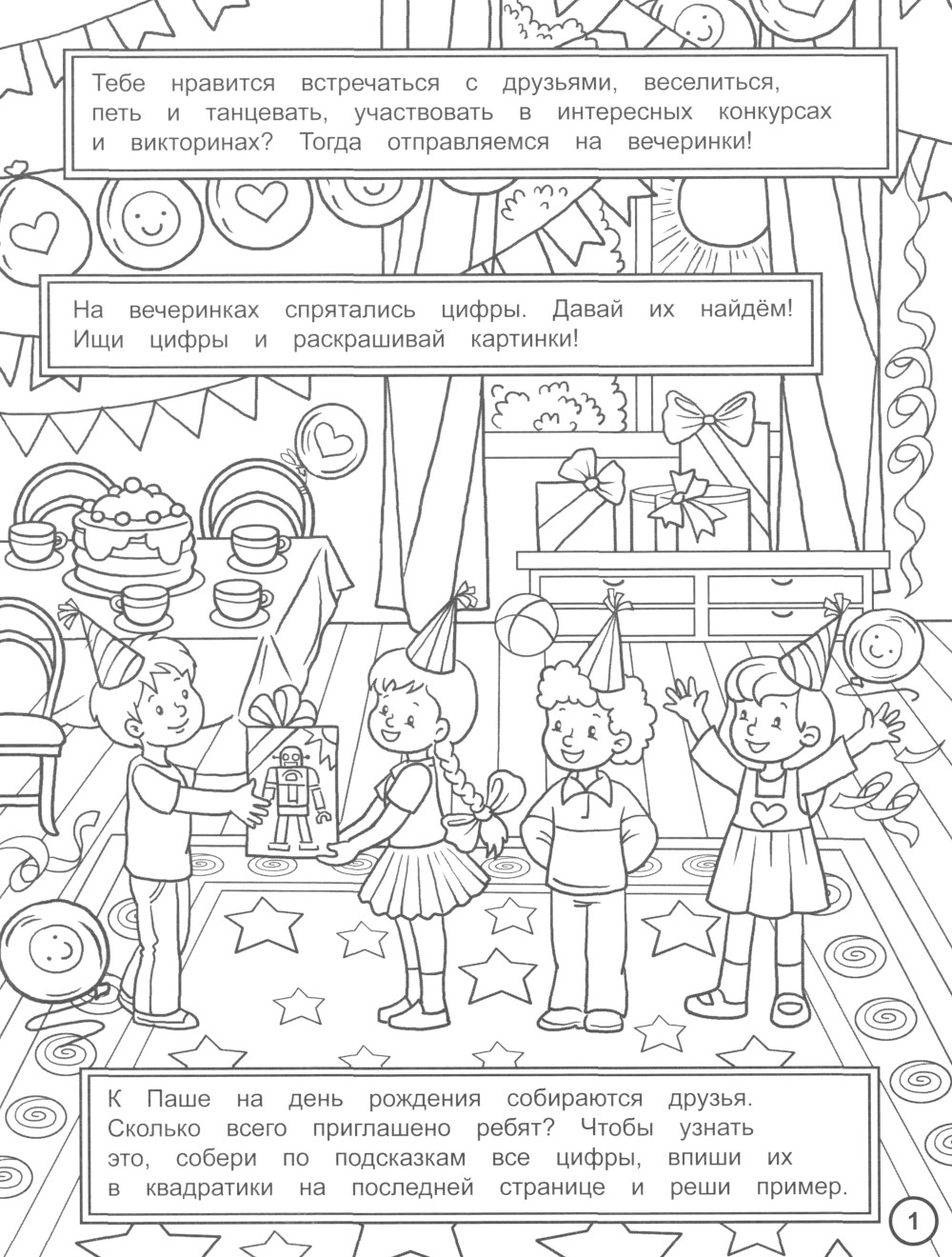 Найди цифры. Раскраска-квест. Вечеринка в стиле..