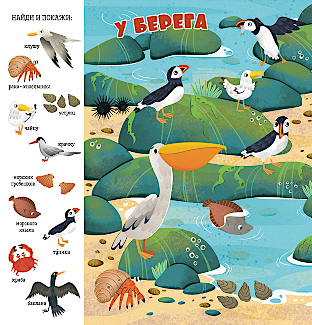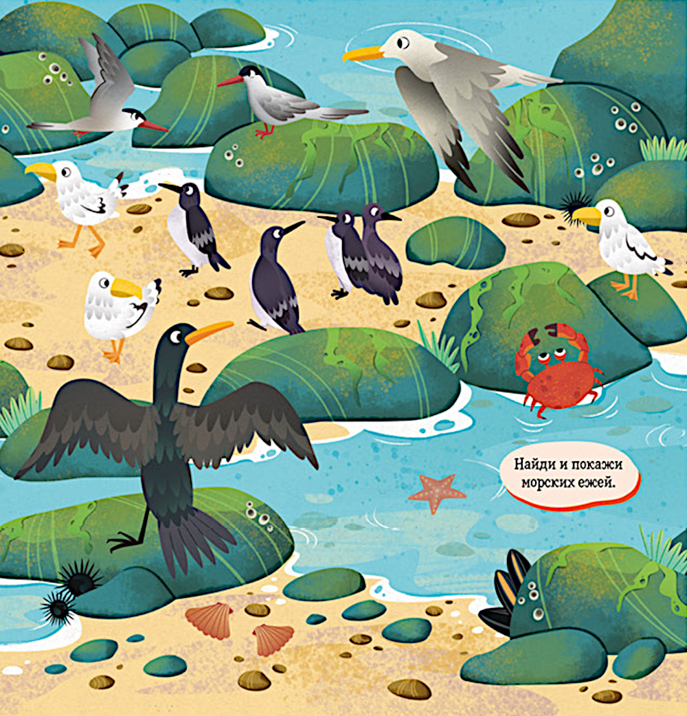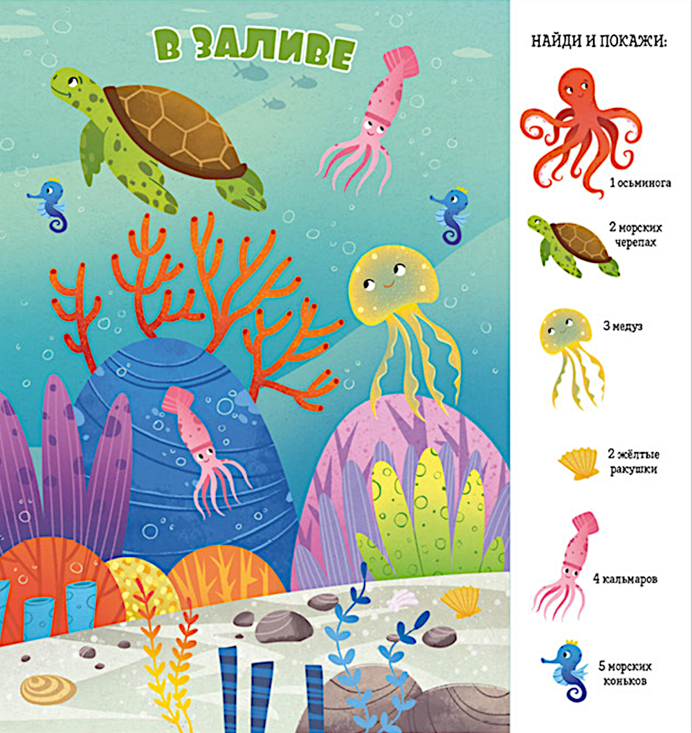 «Найди и покажи, малыш. Океаны и моря» - красочный виммельбух для знакомства ребенка с удивительным подводным миром и его обитателями. На ярких панорамных разворотах малышей ждут десять тем для изучения и игры: океан, море, коралловые рифы, на берегу, животные северных морей, морские сокровища, подводные растения, морской залив, необычные обитатели морей, интересные факты. Забавные иллюстрации Юлии Ершовой выполнены так, что ребенок без труда запомнит множество обитателей подводного мира, птиц и зверей, живущих на берегах морей и океанов. Плотные страницы и твердая обложка позволят книге долго радовать маленьких читателей, а ее формат разработан так, чтобы ребенку было удобно держать ее в руках.| Издательство | Клевер-Медиа-Групп |