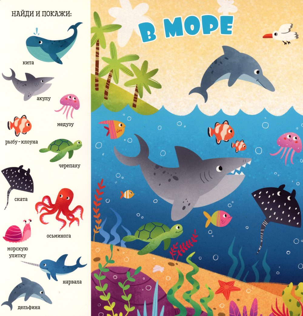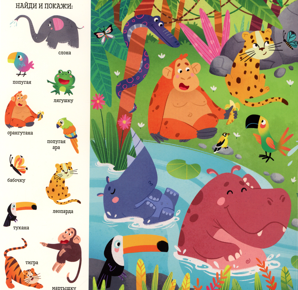 Эта книга поможет превратить обучение в веселую игру! Яркая и увлекательная книжка-картонка, любимая детская игра «найди и покажи», забавные животные и красочные ПРЕДМЕТЫ для поиска - идеальное сочетание для развития речи и внимательности вашего малыша.| Издательство | Клевер-Медиа-Групп |