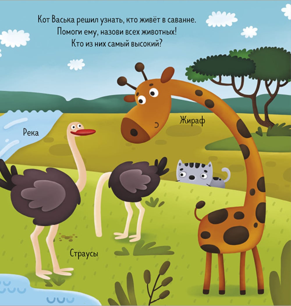 Однажды домашний кот решил отправиться в кругосветное путешествие и познакомиться с обитателями разных уголков Земли! Открывайте книгу и следите за его приключениями в лесах, горах, саванне, джунглях и даже на Северном полюсе! А ещё играйте в «найди и покажи» и изучайте удивительный и разнообразный мир животных!| Издательство | Клевер-Медиа-Групп |
