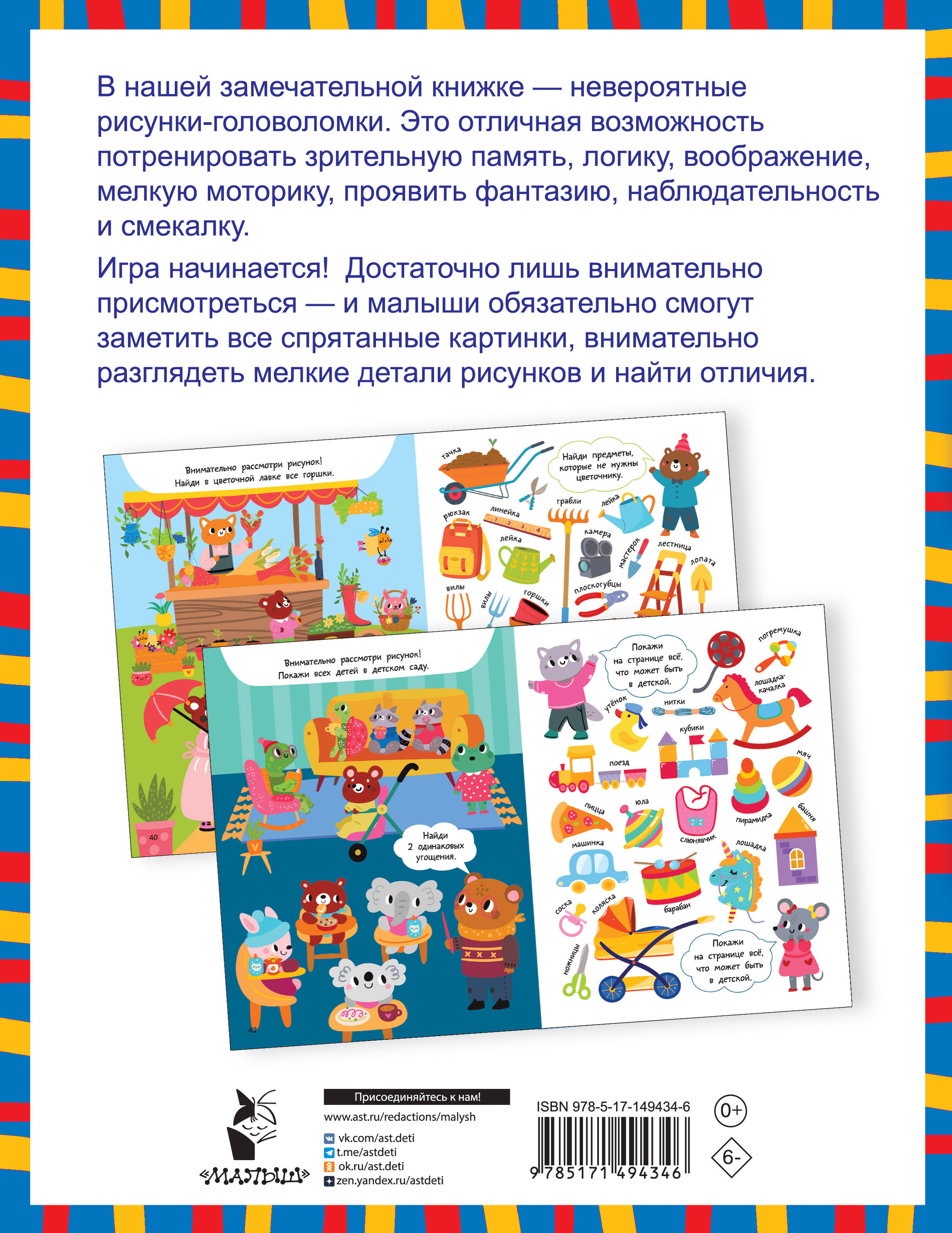 Открывайте книжку картинок-головоломок и устраивайте квест или викторину - в игре раскрываться творческие способности, развиваются внимание, память, воображение. Находя сходства и отличия, решая логические задачки, малыши не только весело проведут время, но и смогут проявить смекалку, наблюдательность, фантазию. Забавные иллюстрации поднимут настроение и создадут для компании малышей атмосферу увлекательной игры. Замечательная книжка игр и заданий подарит ребенку множество приятных минут! Открывайте замечательную книжку игр и заданий - и устаревайте веселую и увлекательную викторину!| Издательство | АСТ |