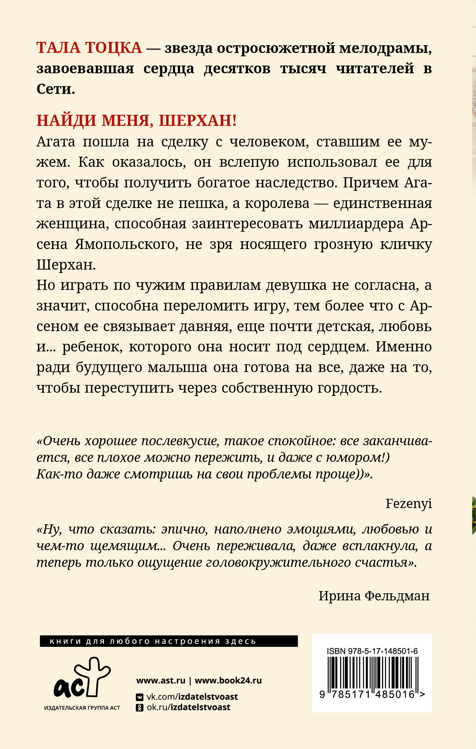 Агата пошла на сделку с человеком, ставшим ее мужем. Как оказалось, он вслепую использовал ее для того, чтобы получить богатое наследство. Причем Агата в этой сделке не пешка, а королева - единственная женщина, способная заинтересовать миллиардера Арсена Ямопольского, не зря носящего грозную кличку Шерхан. Но играть по чужим правилам девушка не согласна, а значит, способна переломить игру, тем более что с Арсеном ее связывает давняя, еще почти детская, любовь и... ребенок, которого она носит под сердцем. Именно ради будущего малыша она готова на все, даже на то, чтобы переступить через собственную гордость.