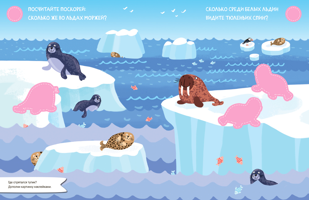 Все малыши любят стихи и легко усваивают ритмичную информацию. Именно поэтому задания на счет в книге «На севере» серии «Найди, посчитай, наклей» даны в стихотворной форме. Маленький читатель отправится на север, познакомится с арктическими животными и выполнит увлекательные задания: найдет спрятавшегося тупика, посчитает животных на странице и приклеит нужную цифру, дополнит картинку наклейками с забавными зверушками. Такие занятия способствуют развитию речевых способностей, внимания и памяти, мелкой моторики, мышления и логики; расширению кругозора.| Издательство | Мозаика-Синтез |