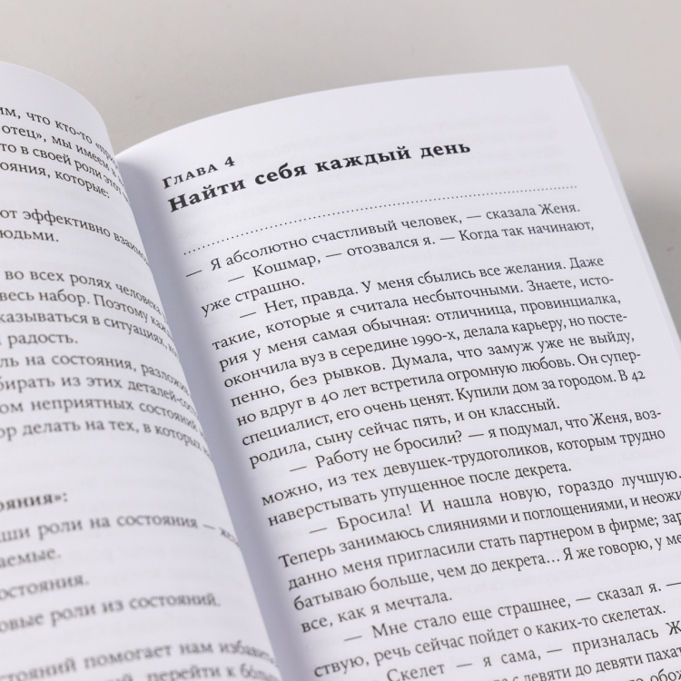 «Это как матрешка: в каждый момент в вопросе "Кто я такой?" скрыт вопрос "Чего я хочу?", а в нем - вопрос "Что со мной происходит сейчас?". Ответить на первые вопросы можно, только если уметь отвечать на последний. Нельзя "найти себя" единственный раз: поиск и ощущение себя - постоянный внутренний процесс, который происходит во многом помимо нашего сознания. Настроить этот постоянный процесс и есть наша задача».