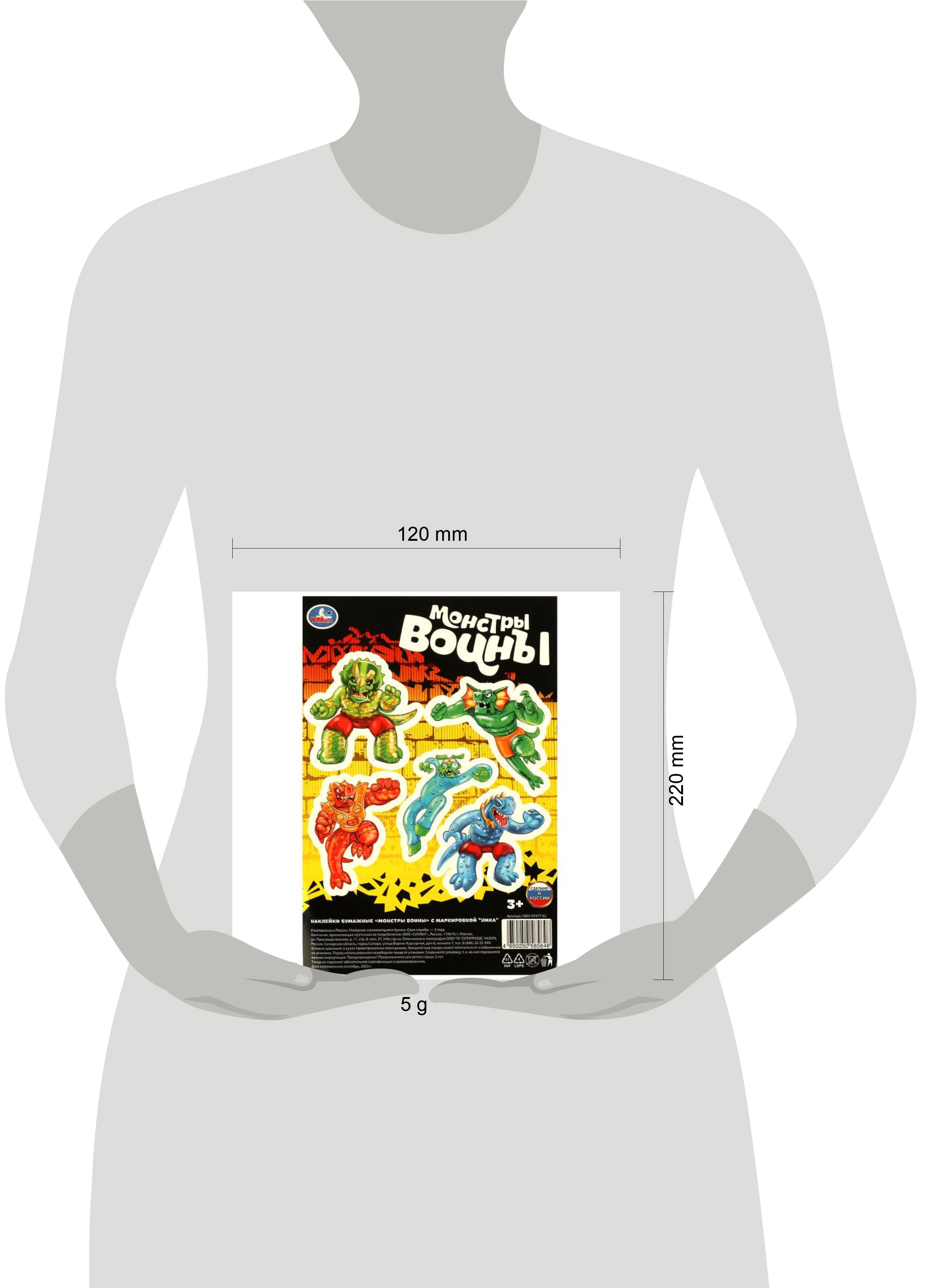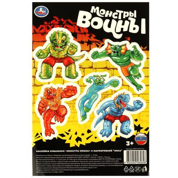 Аннотация: Наклейки бумажные, 120*180 мм монстры воины Умка в кор.1000шт