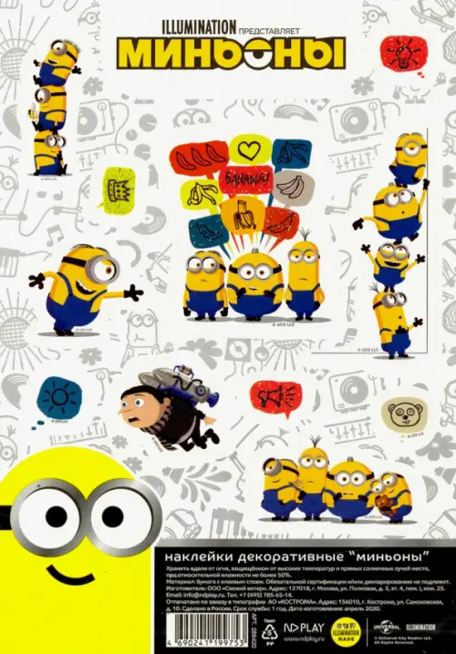 Новая серия наклеек "Миньоны" - это десять наборов красочных многоразовых наклеек с изображением любимых героев. Собери всю коллекцию!