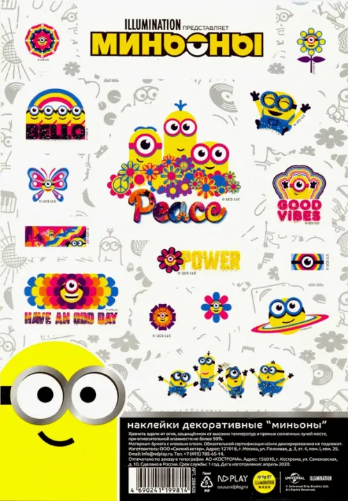 Новая серия наклеек "Миньоны" - это десять наборов красочных многоразовых наклеек с изображением любимых героев. Собери всю коллекцию!