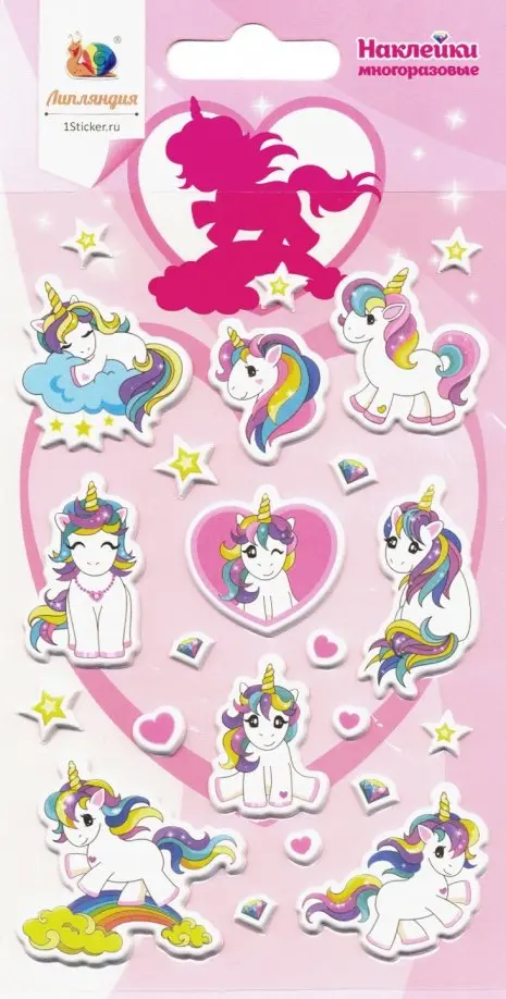 Наклейки многоразовые. Единорог 2