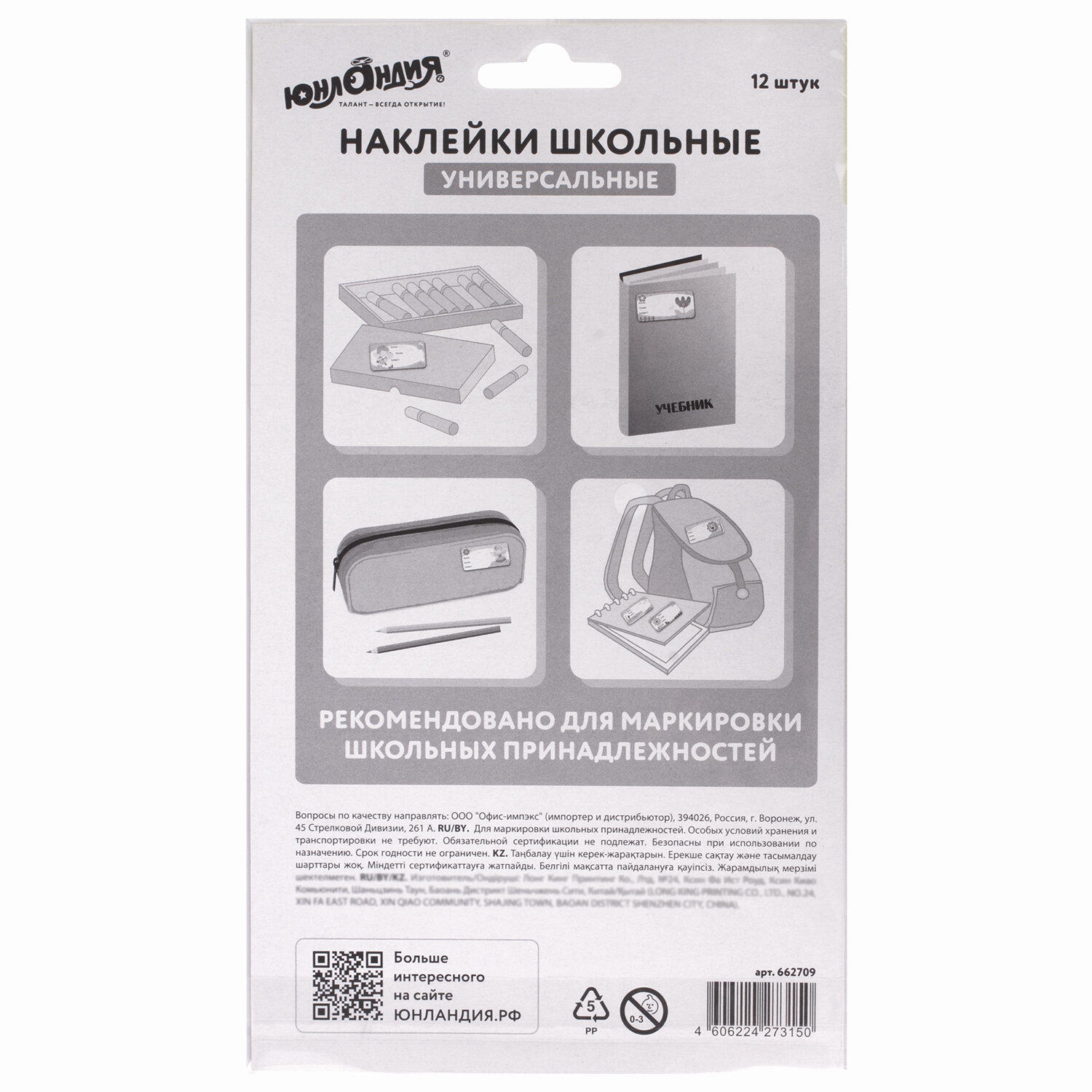 Наклейки для маркировки школьных принадлежностей Юнландия созданы для маркировки тетрадей, дневников, учебников, альбомов для рисования и других вещей школьника, а также для их украшения.