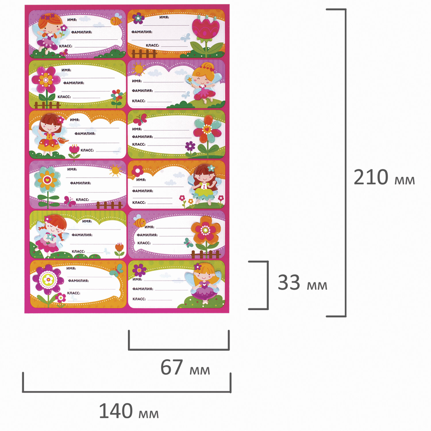 Наклейки для маркировки школьных принадлежностей Юнландия "Принцессы", 12 штук, 14х21 см