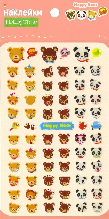 Наклейки объемные. Весёлые зверушки, в ассортименте
