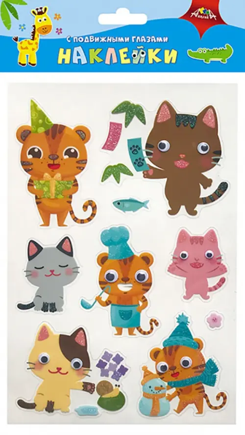 В наборе: наклейки из прозрачного пластика с цветной печатью и выборочным лакированием блестками.