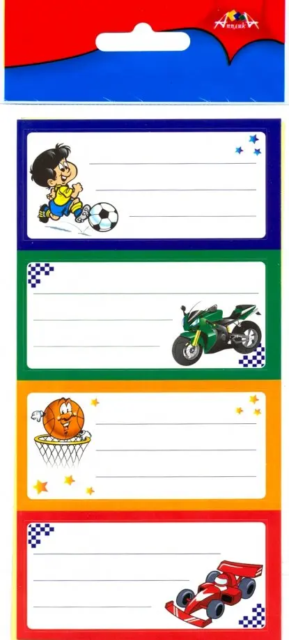 Наклейки школьные с рисунком, набор 12 штук, в ПЭТ-пакете
