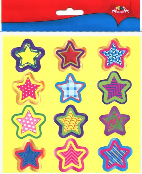 Наклейки поощрительные для школы и детского сада, 36 штук, рисунок - звездочки, диаметр одной наклейки 35 мм. В наборе - 3 листа по 12 наклеек, размер листа - 150х150 мм. Материал наклейки - бумага с клеевым слоем. Упаковка - ПЭТ-пакет с европодвесом._x000D_