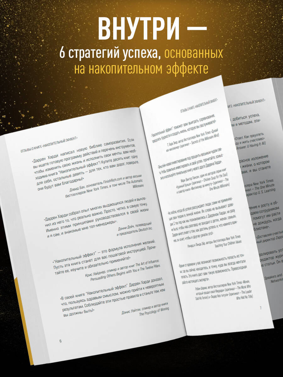 ОТ ИЗДАТЕЛЯ Мы все тайно мечтаем о золотом ключике, который бы отпер дверь с надписью «успех». Мало того, мы надеемся, что ключик этот каким-то чудом однажды окажется в нашем кармане. И всё, что нам останется - легко провернуть его в замочной скважине, и на нас посыпется долгожданные признание, слава, богатство и процветание. Существует ли на самом деле, этот ключик? Да. Но он отнюдь не золотой. Это самый обычный, потертый ключ. И он всегда с нами. Имя ему - выбор. Каждый день мы проворачиваем его несколько сотен раз в замочной скважине собственной жизни. Сотни крошечных решений приближают нас к успеху. Или, наоборот, отдаляют от него. Накопительный эффект - это система, в основе которой как раз и лежат ежедневные осознанные решения. Именно с помощью этих маленьких ключиков мы способны отпереть нужную дверь и войти в жизнь мечты. ПОЧЕМУ ЭТА КНИГА ДОСТОЙНА ПРОЧТЕНИЯ «Накопительный эффект» - легендарная книга, которую на Западе давно окрестили «библией по саморазвитию» и «лабораторией по изучению успеха». Впервые издается на русском языке. Признана бестселлером таких престижных книжных рейтингов как The New York Times и Wall Street Journal. ОБ АВТОРЕ Сформулировал принцип накопительного эффекта миллионер, предприниматель и коуч Даррен Харди. Свой первый миллион он заработал в 24 года, а в 27 его компания имела оборот в 50 миллионов долларов. ОТЗЫВЫ «"Через тернии к звёздам" - не просто знаменитая фраза, но и прекрасное напоминание о том, что к успеху можно прийти, только если шаг за шагом идти к своей цели. Даррен Харди в "Накопительном эффекте" учит делать это по-настоящему продуманно и системно!» - Ульяна Петрухина, ulielie/улилай, книжный видеоблогер| Издательство | ООО "Издательство "Эксмо" |