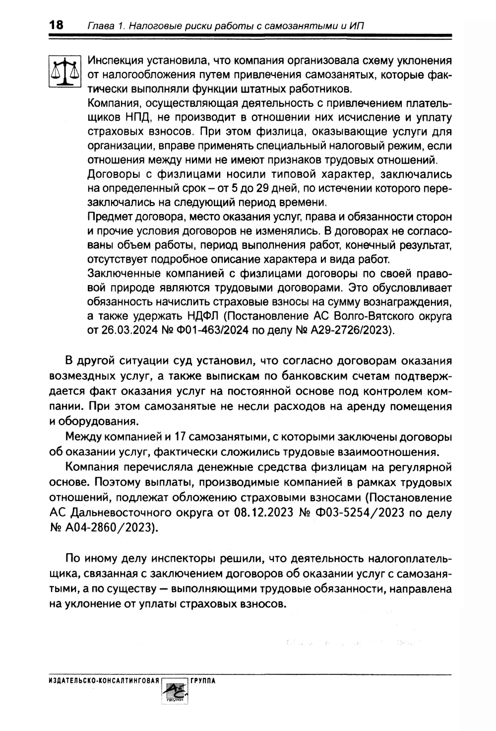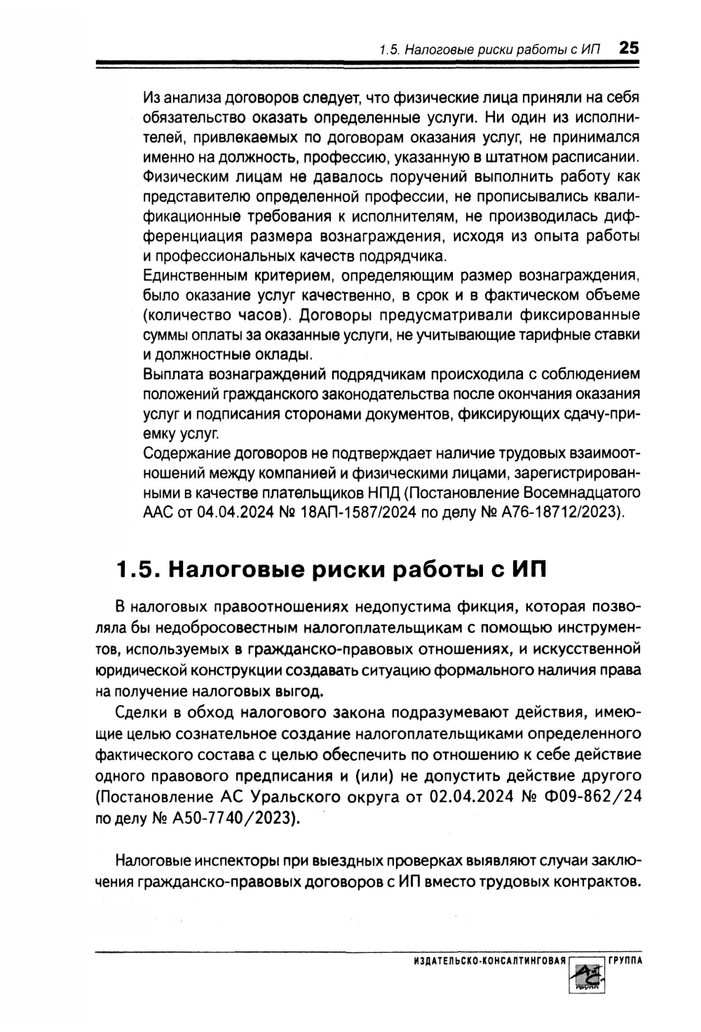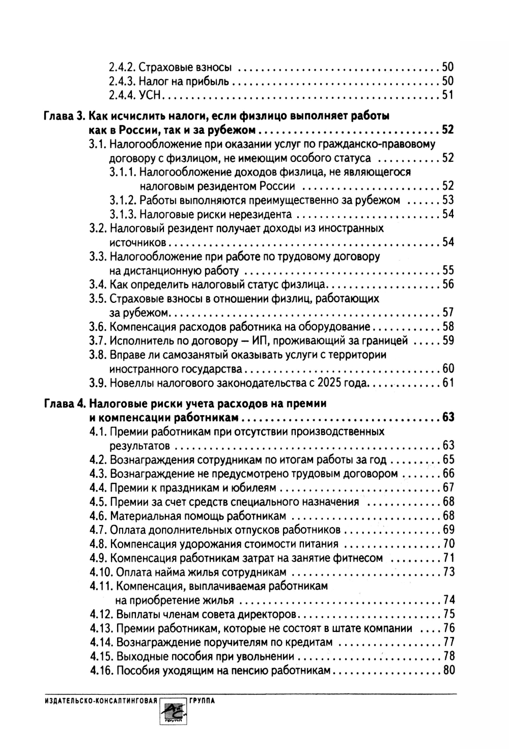 В книге рассмотрены ситуации, встречающиеся в хозяйственной практике многих компаний и вызывающие вопросы у налоговых органов в рамках проводимых ими мероприятий налогового контроля. Риски, возникающие при работе с физлицами (предпринимателями, самозанятыми, налоговыми резидентами и не являющимися таковыми) в рамках договоров гражданско-правового характера. Нюансы налогового учета разного рода выплат работникам в рамках трудовых взаимоотношений (премии, материальная помощь, компенсации, выходные пособия). Спорные ситуации, связанные с ценообразованием, сделками со взаимозависимыми лицами, реорганизацией (риски претензий по дроблению), уступкой прав, налоговым учетом операций с ОС и НМА. Автором проанализированы нормы законодательства, рассмотрены официальные разъяснения Минфина России и ФНС России. Особое внимание уделено обобщению судебной практики - постановлений Верховного Суда РФ и арбитражных судов различных округов. При подготовке книги учтены изменения законодательства на 2024 и 2025 гг. Книга адресована бухгалтерам, аудиторам, налоговым консультантам, юристам, руководителям организаций всех форм собственности.| Издательство | АйСи Групп |