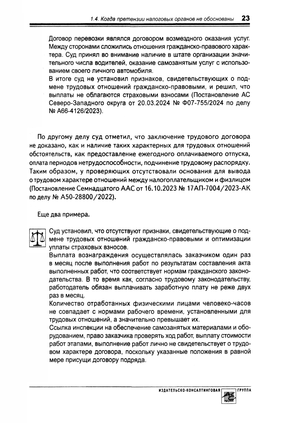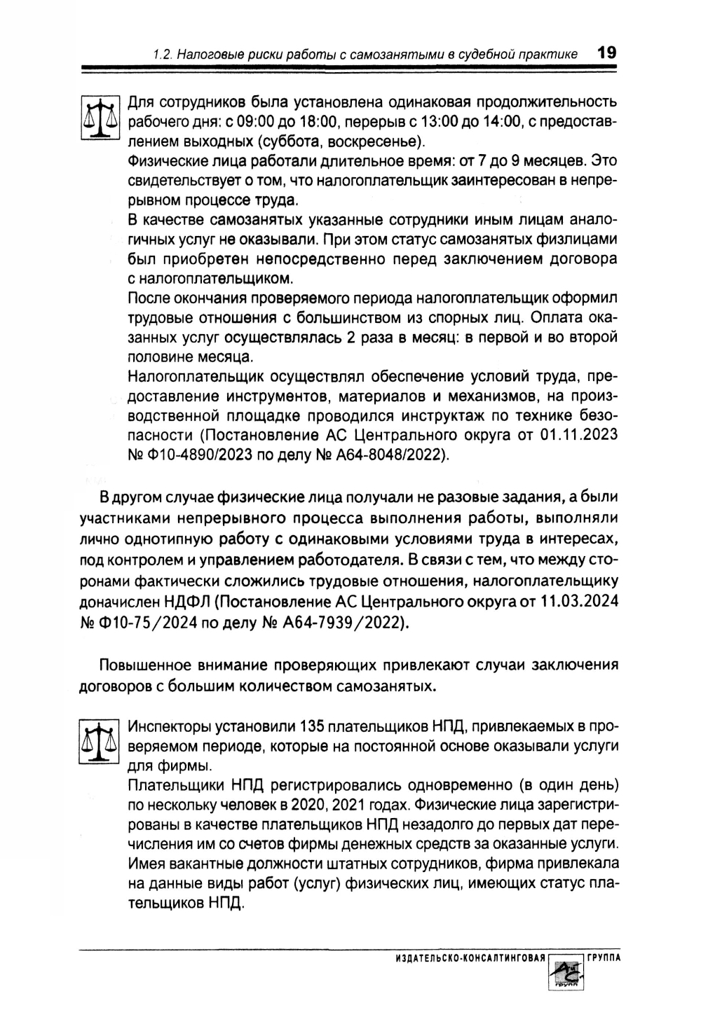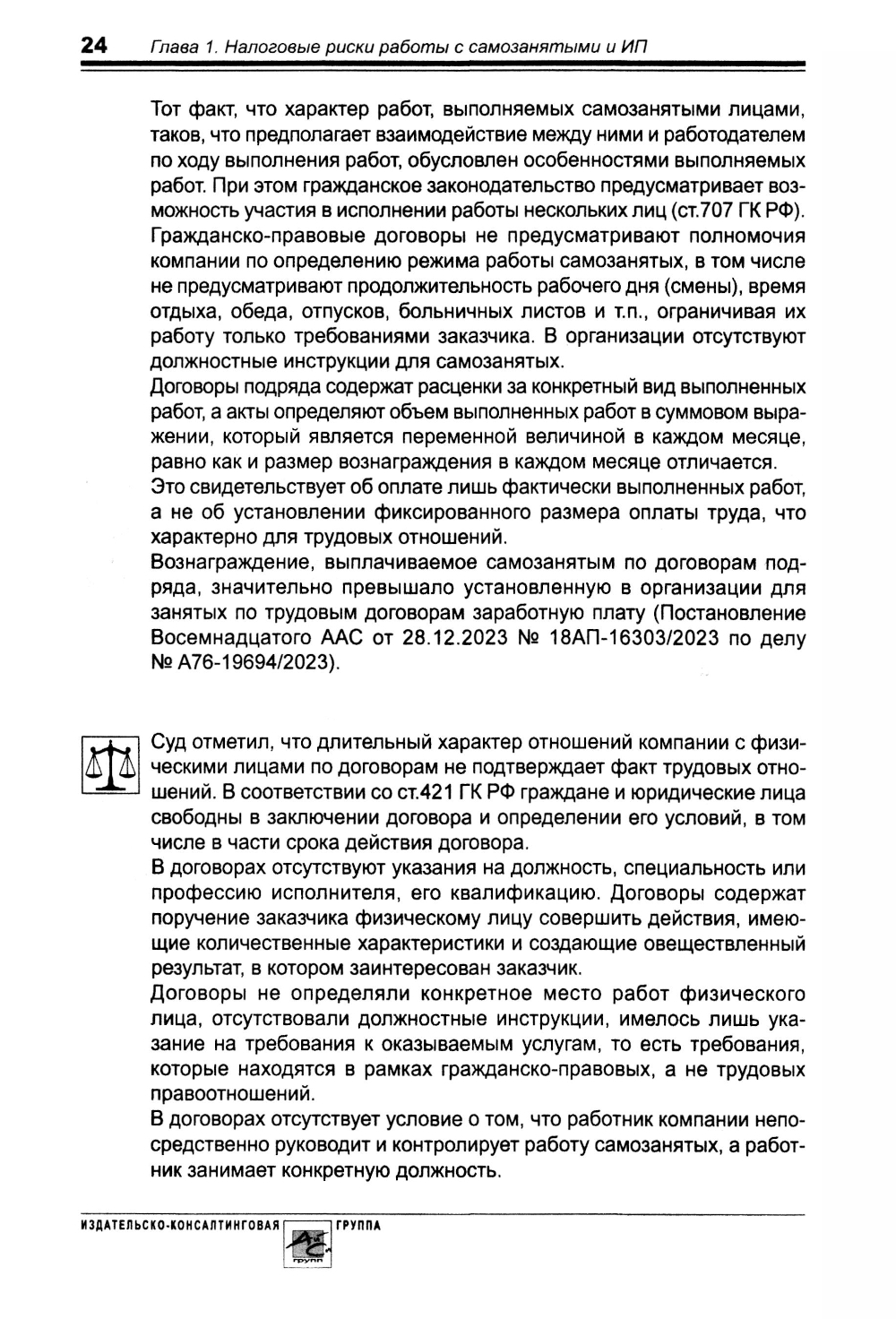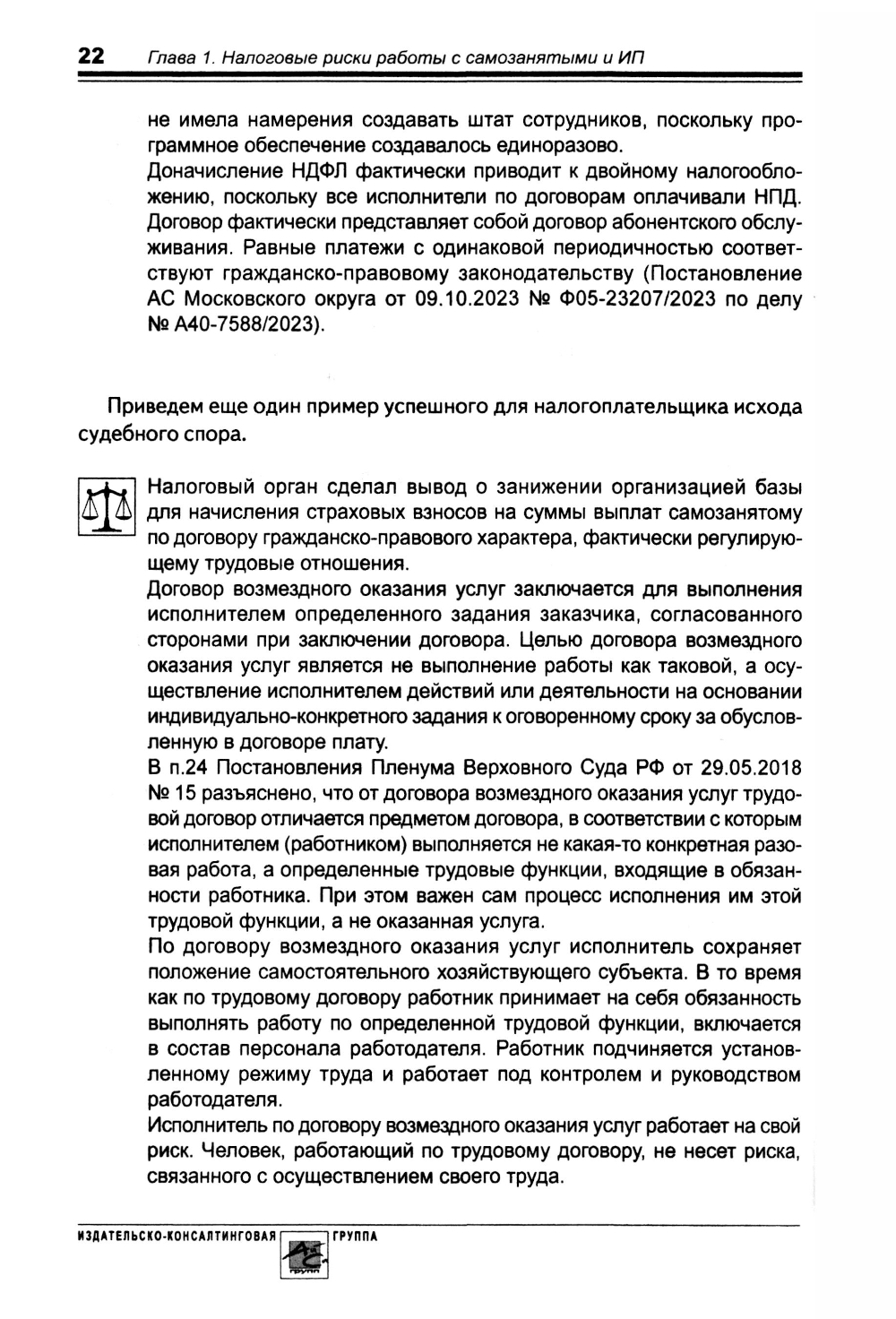 В книге рассмотрены ситуации, встречающиеся в хозяйственной практике многих компаний и вызывающие вопросы у налоговых органов в рамках проводимых ими мероприятий налогового контроля. Риски, возникающие при работе с физлицами (предпринимателями, самозанятыми, налоговыми резидентами и не являющимися таковыми) в рамках договоров гражданско-правового характера. Нюансы налогового учета разного рода выплат работникам в рамках трудовых взаимоотношений (премии, материальная помощь, компенсации, выходные пособия). Спорные ситуации, связанные с ценообразованием, сделками со взаимозависимыми лицами, реорганизацией (риски претензий по дроблению), уступкой прав, налоговым учетом операций с ОС и НМА. Автором проанализированы нормы законодательства, рассмотрены официальные разъяснения Минфина России и ФНС России. Особое внимание уделено обобщению судебной практики - постановлений Верховного Суда РФ и арбитражных судов различных округов. При подготовке книги учтены изменения законодательства на 2024 и 2025 гг. Книга адресована бухгалтерам, аудиторам, налоговым консультантам, юристам, руководителям организаций всех форм собственности.| Издательство | АйСи Групп |