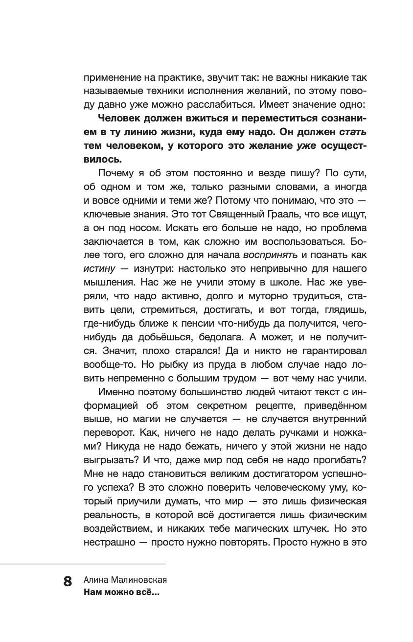 «Нам можно всё, но мы ещё не хотим. Давайте же захотим!» - книга для всех, кто хочет воплотить свои мечты в реальность, стать единственным Творцом своей реальности и наконец-то жить так, как будто для него нет ничего невозможного! Предлагаемые Алиной Малиновской, писателем и консультантом по вопросам духовного развития, инструменты глубокой проработки себя помогут познать свою суть и понять, кто вы и в чем ваша сила. Это руководство на пути к просветлению станет вашим путеводителем по пробуждению сознания.| Издательство | АСТ |