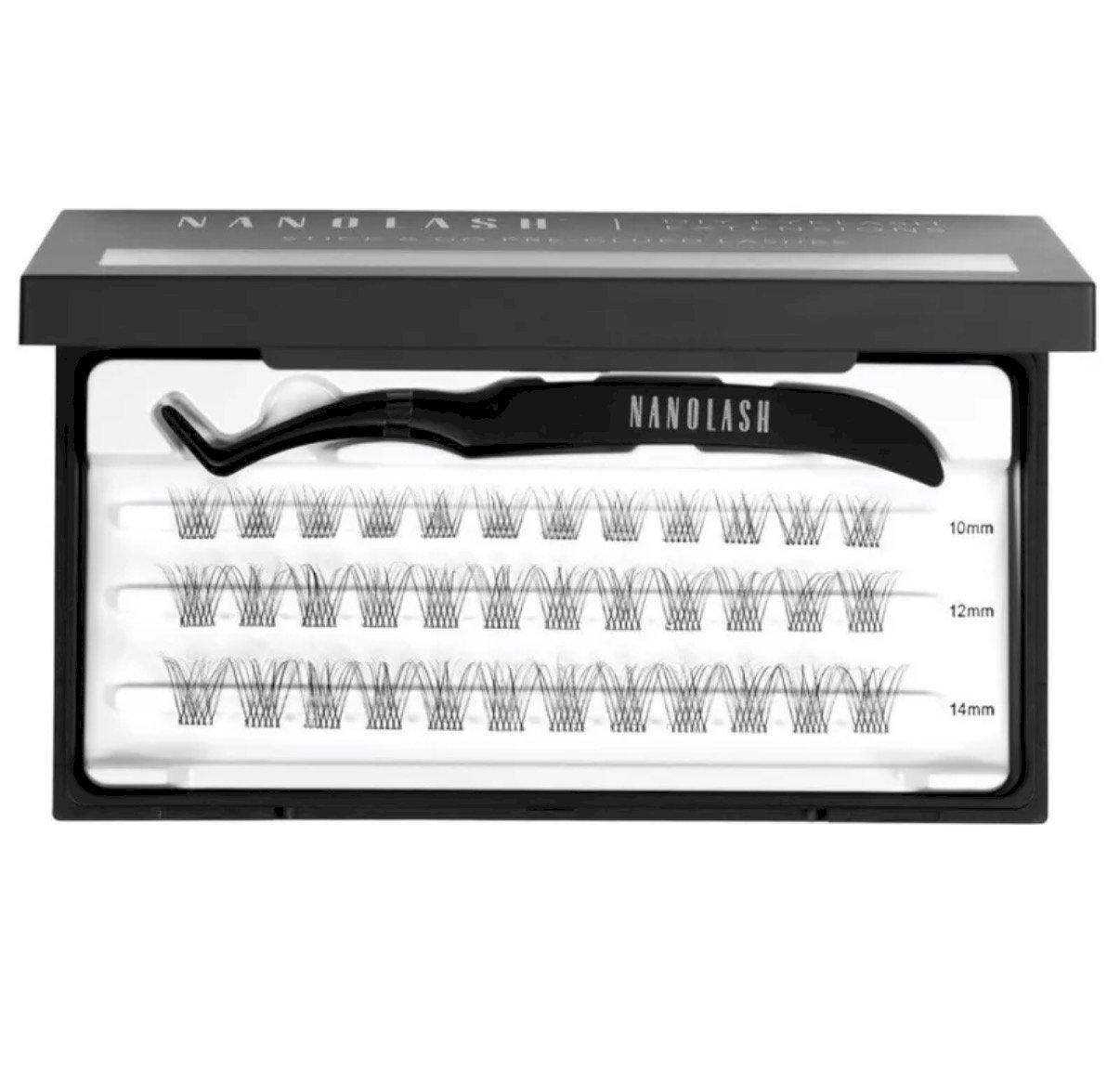 Nanolash DIY Stick & Go Накладные Ресницы Classy, 36 шт - это инновационный набор самоклеящихся пучков искусственных ресниц с аппликатором, которые позволяют создать выразительный, но при этом естественный эффект взгляда без использования дополнительного клея; каждая пучковая ресничка снабжена ультратонким прозрачным клеевым слоем, что делает нанесение быстрым, чистым и простым даже для новичков, а комбинация длин 10 мм, 12 мм и 14 мм позволяет адаптировать образ под любой стиль - от повседневного до вечернего. Эффект держится до 5 дней, а гибкая структура сохраняет форму и комфорт при ношении.