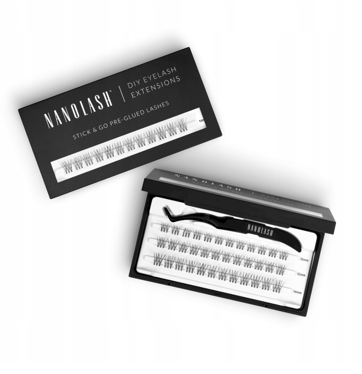 Nanolash DIY Stick & Go Накладные Ресницы Innocent, 36 шт - это инновационный набор самоклеящихся пучков ресниц с аппликатором, который позволяет создать выразительный, но естественный эффект взгляда без использования дополнительного клея; каждая пучковая ресничка уже оснащена ультратонким прозрачным клеевым слоем, что делает нанесение быстрым, чистым и простым даже для начинающих, а вариации длины (10 мм, 12 мм и 14 мм) позволяют добиться мягкого дневного или более эффектного вечернего образа, сохраняющегося до 3-5 дней.