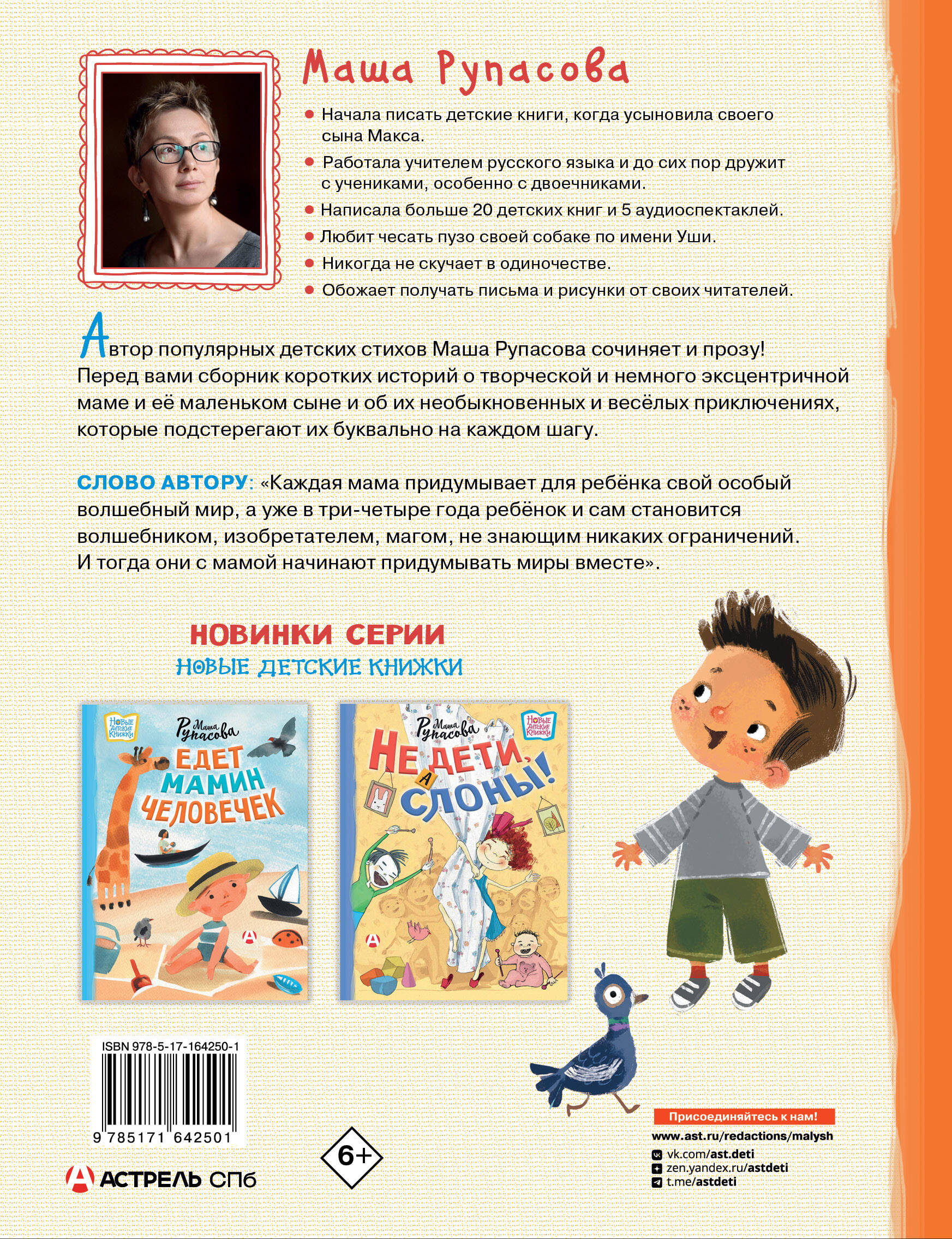 «Наоборотная мама» - первый сборник не стихов, а короткой прозы автора. Здесь собраны небольшие забавные и немного абсурдные истории об одной необычной семье. Мама и её сынок учат крокодила летать, отправляются на Северный полюс, а потом вместе с папой готовят новогоднее угощение для... ёлки! Книга подходит для семейного чтения и снабжена прекрасными иллюстрациями Анны Чернышовой.| Издательство | Издательство "АСТ" |
