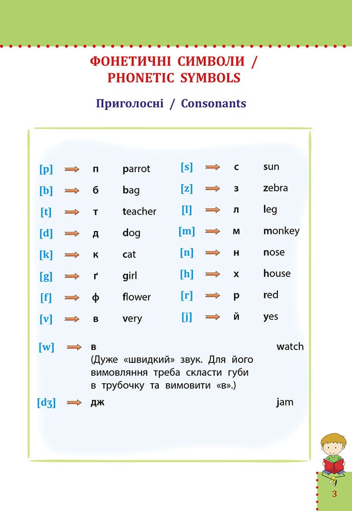 ВІДПОВІДАЄ КОНЦЕПЦІЇ НОВОЇ УКРАЇНСЬКОЇ ШКОЛИ. Довідник містить стислі відомості з англійської мови, викладені відповідно до нової програми початкової школи у зручній наочній формі. Робота з посібником допоможе уточнити незрозуміле, заповнити наявні прогалини в знаннях, удосконалити власні вміння й навички, систематизувати отримані знання. Посібник призначений для учнів 1-4 класів, також він стане у нагоді батькам та вчителям. Чому варто придбати: Вдале поєднання теоретичного матеріалу й практичних порад робить довідник незамінним помічником молодшого школяра, чудовим організатором самостійної роботи. Книга відповідає чинній програмі Нової української школи.| ISBN | 978-617-7660-25-4 |