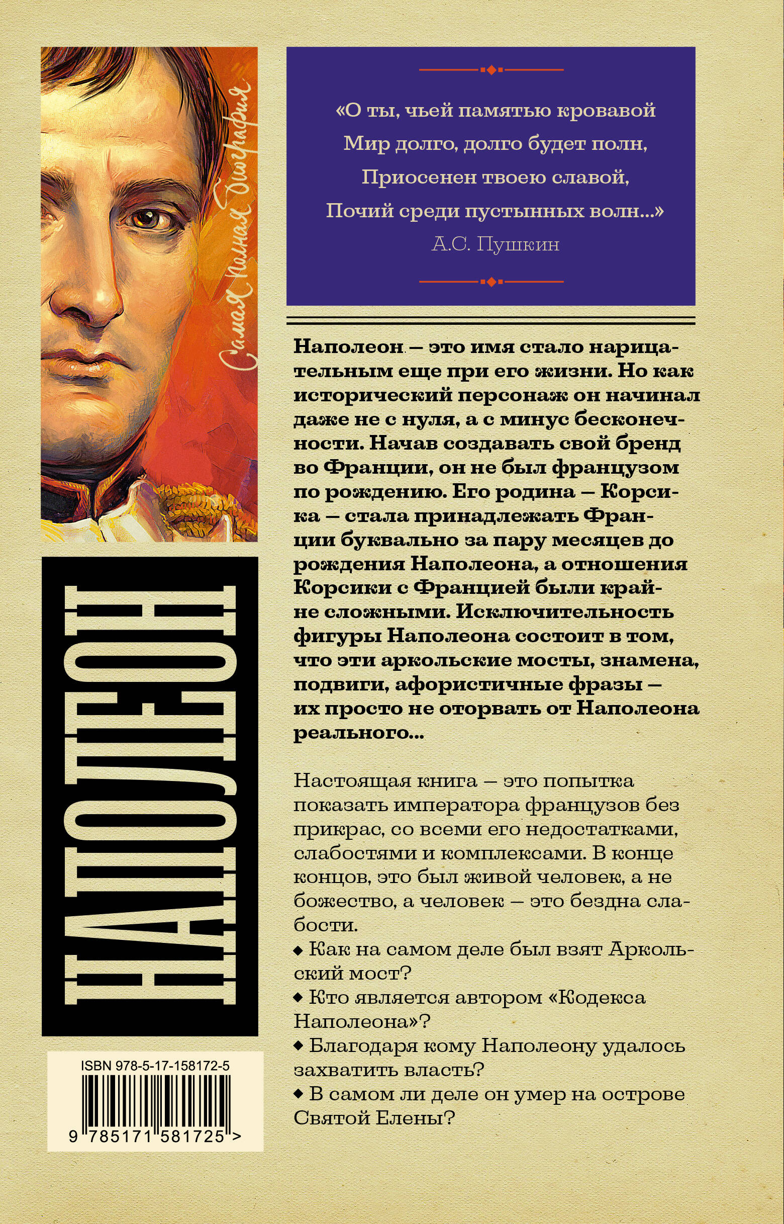 Наполеон - это имя стало нарицательным еще при его жизни. Но как исторический персонаж он начинал даже не с нуля, а с минус бесконечности. Начав создавать свой бренд во Франции, он не был французом по рождению. Его родина - Корсика - стала принадлежать Франции буквально за пару месяцев до рождения Наполеона, а отношения Корсики с Францией были крайне сложными. Исключительность фигуры Наполеона состоит в том, что эти аркольские мосты, знамена, подвиги, афористичные фразы - их просто не оторвать от Наполеона реального... Настоящая книга - это попытка показать императора французов без прикрас, со всеми его недостатками, слабостями и комплексами. В конце концов, это был живой человек, а не божество, а человек - это бездна слабости. Как на самом деле был взят Аркольский мост? Кто является автором "Кодекса Наполеона"? Благодаря кому Наполеону удалось захватить власть? В самом ли деле он умер на острове Святой Елены?
