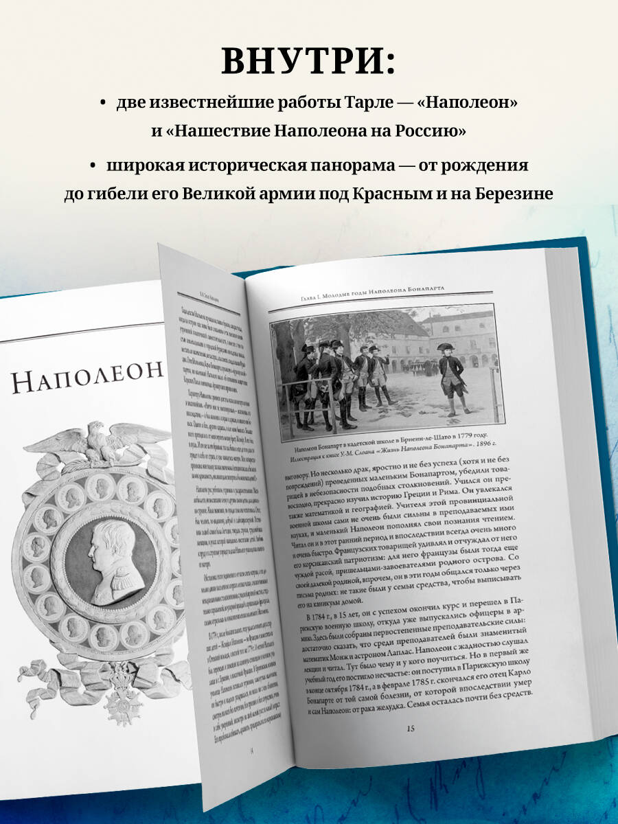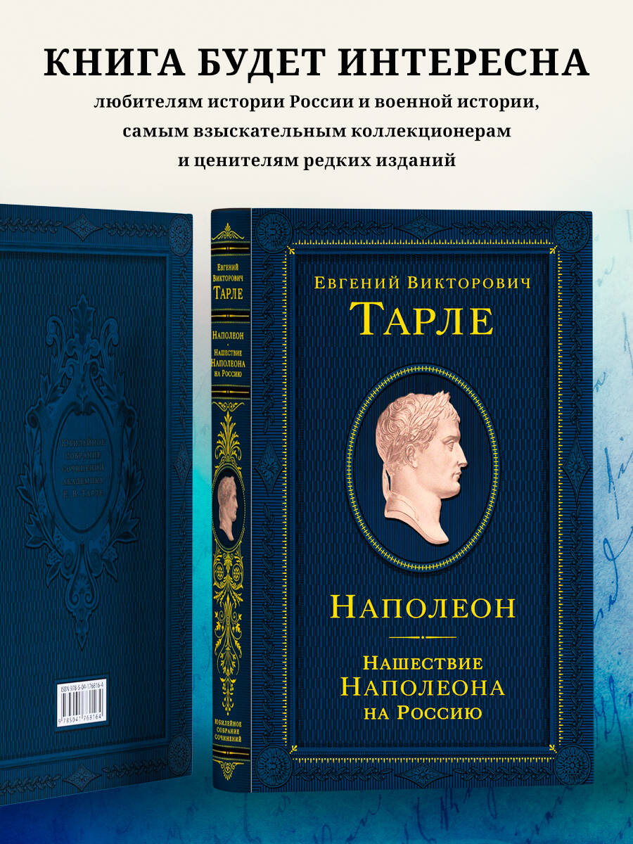Это коллекционное издание открывает собрание сочинений известного советского историка, академика Евгения Викторовича Тарле (1874-1955). Блестящий педагог, он обладал незаурядным для ученого литературным талантом, оставаясь при этом авторитетнейшим специалистом в российской исторической науке, всецело преданным исторической правде. Популяризаторский стиль, живой язык и повествовательный динамизм в сочетании со строгим, педантичным следованием фактам ставят его работы в один ряд с трудами великого Н. М. Карамзина, В. О. Ключевского, Н. И. Костомарова. В первом томе, куда вошли две известнейшие работы Тарле по наполеонистике и Отечественной войне 1812 года - «Наполеон» и «Нашествие Наполеона на Россию», - представлена широкая историческая панорама - от рождения будущего императора Наполеона I Бонапарта на острове Корсика до гибели его Великой армии под Красным и на Березине. Серия «Подарочные издания. Тарле Е.В. Юбилейное собрание сочинений» - это эксклюзивная книжная коллекция, приуроченная к 150-летию со дня рождения знаменитого советского историка Евгения Викторовича Тарле. В серию вошли ключевые труды академика Е. В. Тарле: «Наполеон», «Нашествие Наполеона на Россию», «Крымская война» - эти и другие работы, представленные в серии, были и остаются блестящими образцами русской исторической мысли. Собрание сочинений станет украшением библиотеки самого взыскательного коллекционера и любителя редких изданий.| Издательство | ООО "Издательство "Эксмо" |