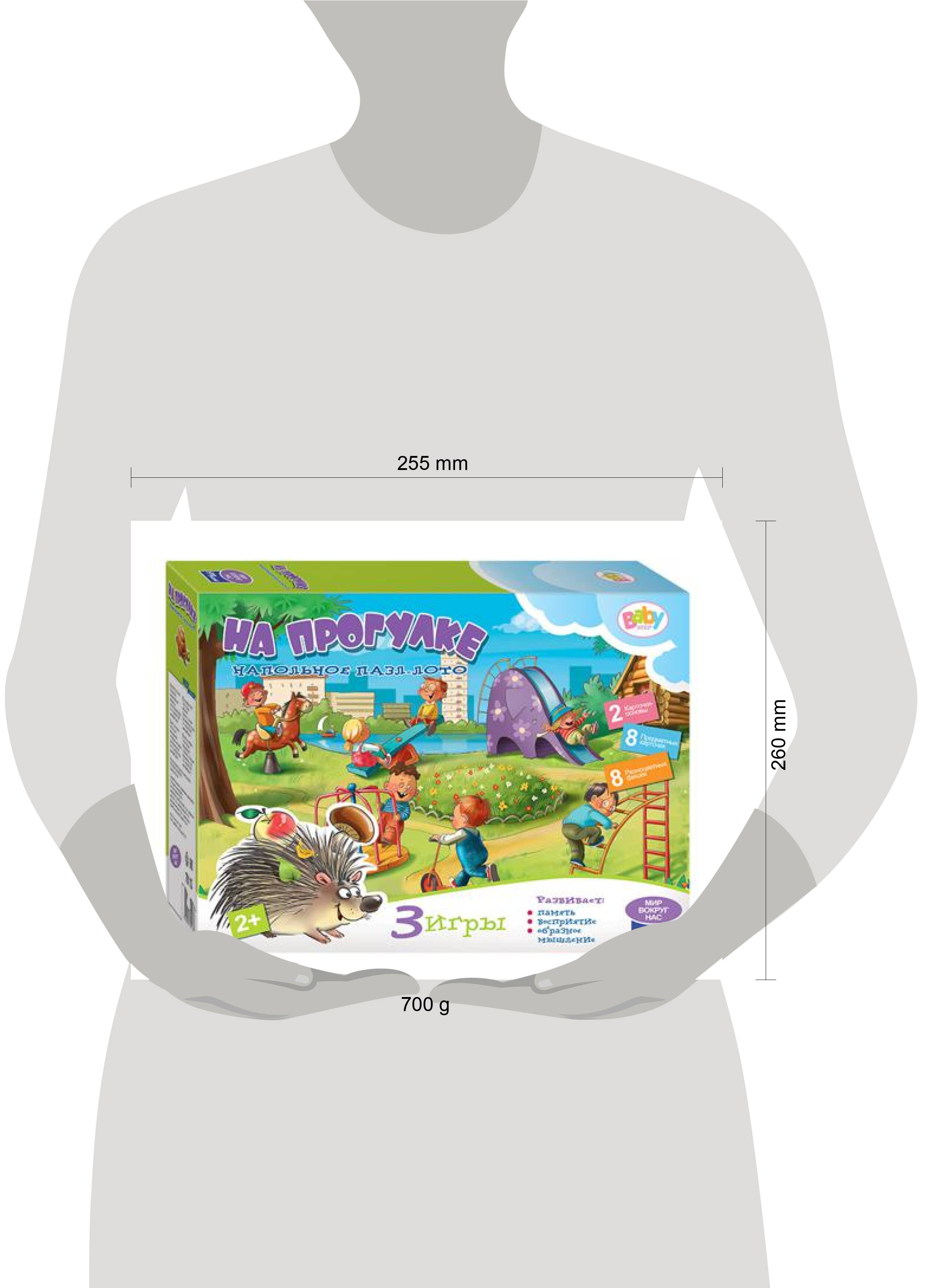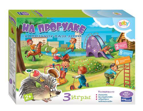 Пазл-лото "На прогулке" дает представление о животных в парке и об игровой зоне на детской площадке. Развивает память, восприятие и образное мышление. 3 варианта игры: "Найди предметы", "Что изменилось?", "Отвечай-ка!". В комплекте: 2 карточки-основы, 8 предметных карточек, сюжетная картинка и 8 фишек. Размер картинки: 1050x680 мм. Возраст: 2+.| Издательство | Степ Пазл ЗАО |