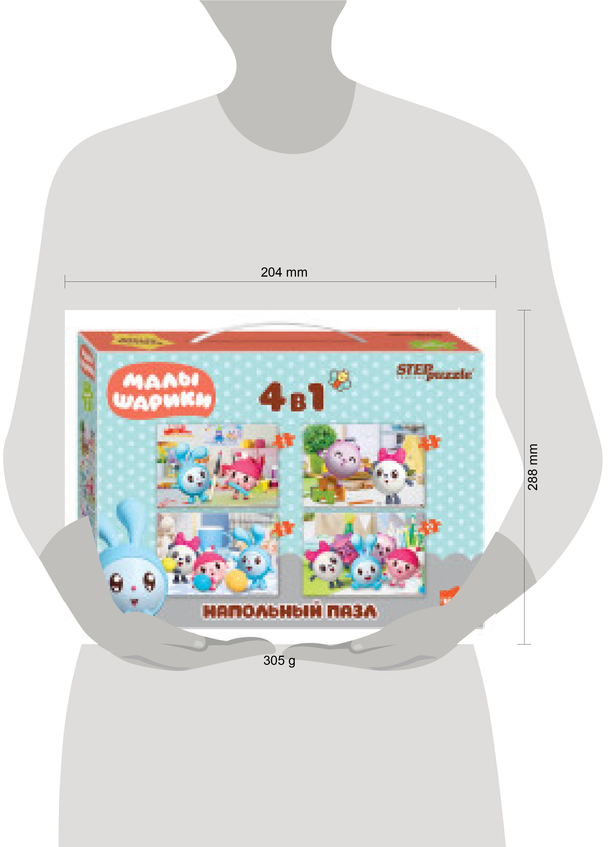 Пазл "Малышарики" - напольный пазл для детей. Напольные пазлы способствуют развитию: внимания; мелкой моторики; сенсорных навыков; ассоциативного мышления. В наборе вы найдете 30 деталей разных размеров (размеры деталей от 5,7x5,7 см до 11,5x8 см). Задача игрока - найти и соединить в одну цельную картинку пазлы, подходящие друг другу по смыслу. Всего ребенок должен собрать 4 картинки, состоящие из 4, 6, 8 и 12 пазлов... дальше ". Размер одной собранной картинки - 23,2x16 см.| Издательство | Степ Пазл ЗАО |