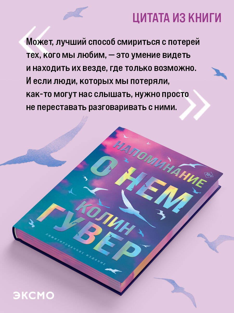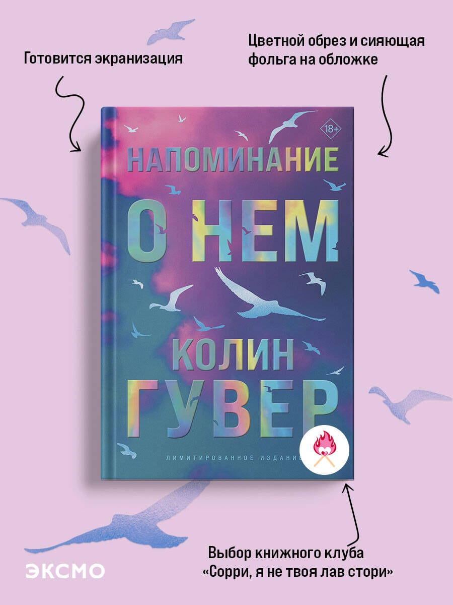 НЕЗАКОННОЕ ПОТРЕБЛЕНИЕ НАРКОТИЧЕСКИХ СРЕДСТВ, ПСИХОТРОПНЫХ ВЕЩЕСТВ, ИХ АНАЛОГОВ ПРИЧИНЯЕТ ВРЕД ЗДОРОВЬЮ, ИХ НЕЗАКОННЫЙ ОБОРОТ ЗАПРЕЩЕН И ВЛЕЧЕТ УСТАНОВЛЕННУЮ ЗАКОНОДАТЕЛЬСТВОМ ОТВЕТСТВЕННОСТЬ. Лимитированное издание мирового бестселлера Колин Гувер, покорившего миллионы читательских сердец. Цветной обрез и сияющая фольга на обложке. ЧИТАЙТЕ КНИГУ - СМОТРИТЕ ФИЛЬМ. В ГЛАВНЫХ РОЛЯХ МАЙКА МОНРО И ТАЙРИК УИЗЕРС. Иногда, чтобы расправить крылья, нужно найти силы простить себя. Отсидев пять лет в тюрьме за трагическую ошибку, Кенна возвращается в город, надеясь воссоединиться со своей четырехлетней дочерью. Ей нужны деньги и поддержка, но как бы сильно Кенна ни старалась все исправить, сожженные мосты невозможно восстановить. Леджер, владелец местного бара, готов принять неудобную правду о Кенне. Может, он - тот самый человек, который сделает ее счастливой? Разрываемый противоречиями, Леджер делает свой выбор. Готовы ли герои пойти за истиной, куда бы она ни привела? И можно ли испытывать страсть к тому, кого ненавидишь? «Может, лучший способ смириться с потерей тех, кого мы любим, - это умение видеть и находить их везде, где только возможно. И если люди, которых мы потеряли, как-то могут нас слышать, нужно просто не переставать разговаривать с ними».| Издательство | ООО "Издательство "Эксмо" |